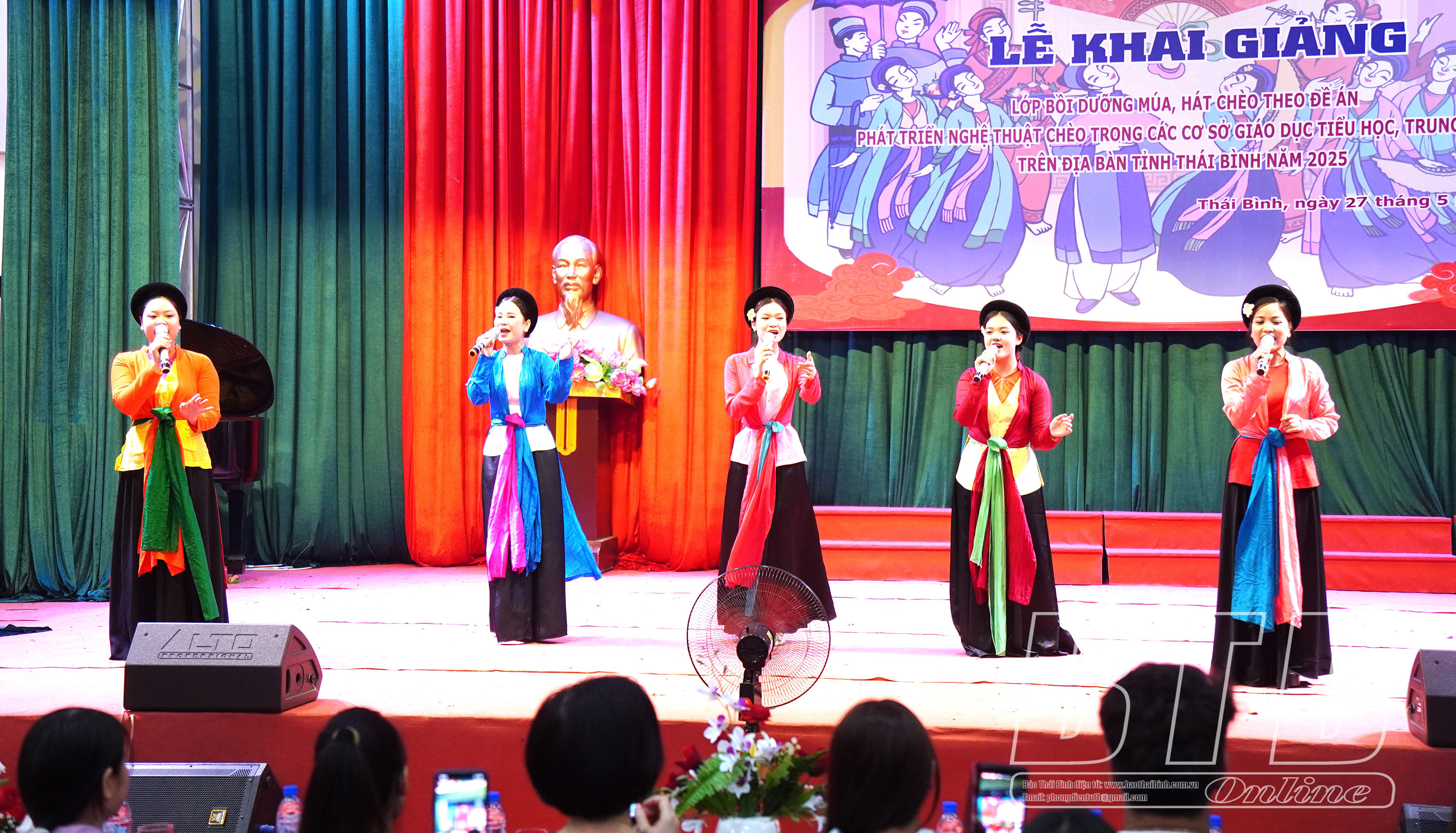 Từ ngày 27/5 - 1/6, gần 700 học viên là giáo viên giảng dạy âm nhạc, tổng phụ trách đội tại các trường tiểu học và trung học cơ sở trong toàn tỉnh được phổ biến kiến thức cơ bản về lịch sử, đặc trưng và giá trị nghệ thuật chèo; bồi dưỡng kỹ thuật hát, múa, biểu diễn các làn điệu chèo tiêu biểu; hướng dẫn xây dựng tiết mục nghệ thuật chèo trong hoạt động giáo dục, sinh hoạt văn nghệ học đường.