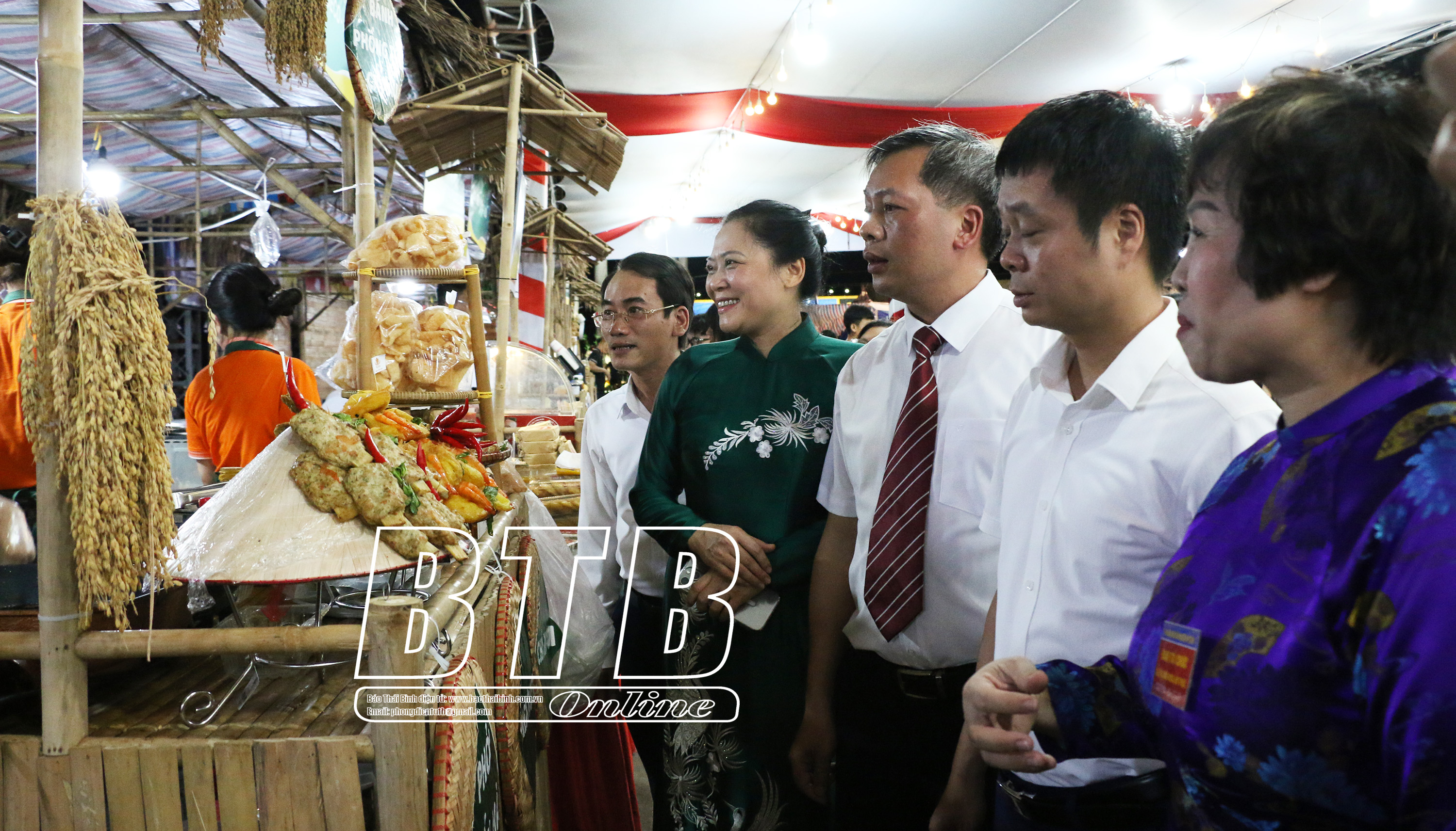 Các đồng chí lãnh đạo huyện Vũ Thư tham quan các gian hàng tại lễ hội.