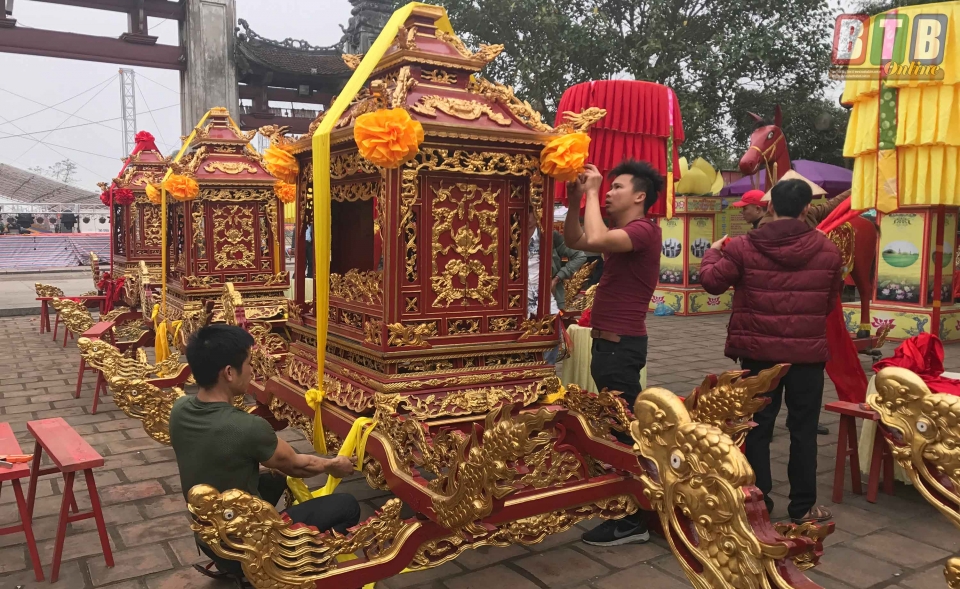 Công tác chuẩn bị cho lễ rước kiệu.