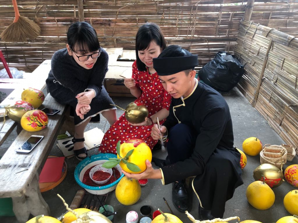 Tại Phố ông đồ, góc chợ quê do Sở Văn hóa - Thể thao và Du lịch tổ chức nhân dịp Tết Nguyên đán Kỷ Hợi 2019, anh Huỳnh đã tổ chức một gian trưng bày quả bưởi viết chữ thư pháp được nhiều người tìm đến xem và rất ưa thích. Rất đông khách tham quan đã mua quả thờ, nhờ anh viết chữ thư pháp để trưng bày trong mâm ngũ quả.