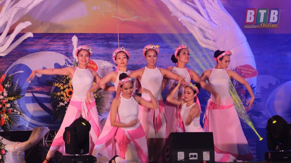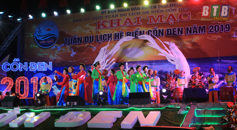 Lễ khai mạc tuần du lịch hè biển Cồn Đen năm 2019 diễn ra với nhiều chương trình văn nghệ mang đậm truyền thống văn hóa quê hương. Ảnh: Tú Anh
