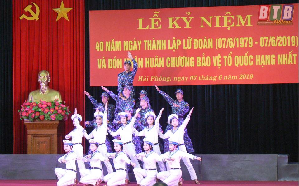 Tiết mục của Nhà hát Chèo tại lễ kỷ niệm 40 năm Lữ đoàn 679 Hải quân. Ảnh Thanh Thưởng