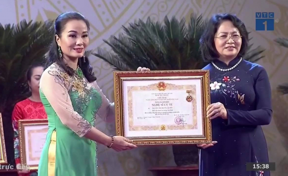 Diễn viên Thương Huyền được phong tặng danh hiệu Nghệ sĩ ưu tú.