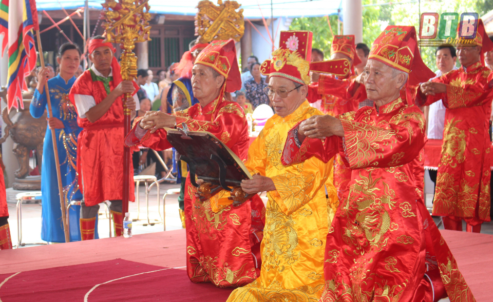 Đoàn tế nam quan xã An Thái thực hiện nghi thức tế Đức Thánh Trần.