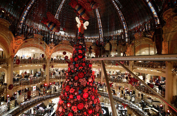 Một cây thông Noel khổng lồ tại Trung tâm thương mại Galeries Lafayette, thủ đô Paris, Pháp trong mùa Giáng sinh năm nay.