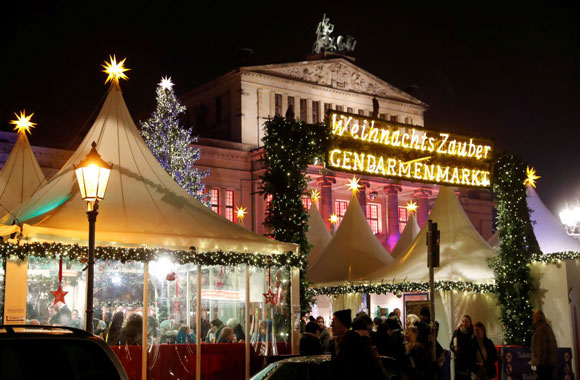 Khu chợ Giáng sinh Gendarmenmarkt ở Berlin được trang hoàng rực rõ dịp khai mạc lễ hội.