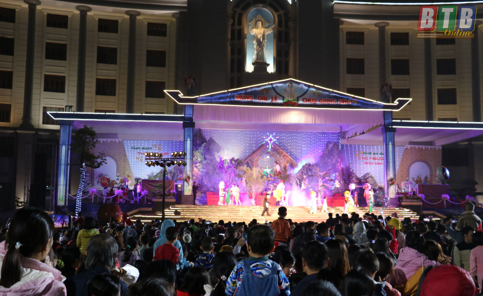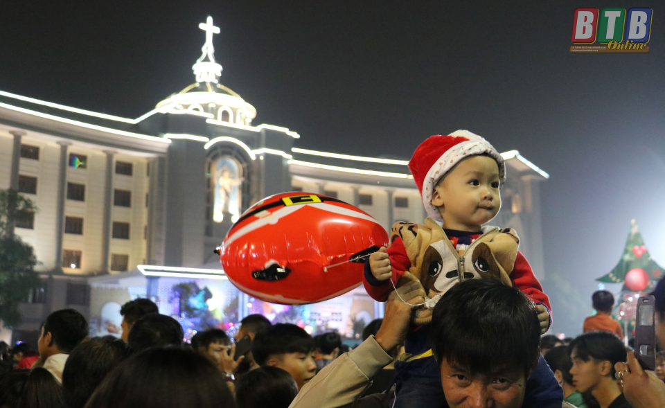 Ngay từ 19 giờ tối ngày 24/12, những tuyến đường như: Lý Thường Kiệt, Lê Lợi, Trần Hưng Đạo, khu vực Quảng trường 14-10 đã chật kín người. Càng về đêm, dòng người đổ về Nhà thờ Chính tòa Thái Bình càng đông hơn khiến cái se lạnh mùa đông thêm ấm áp hơn. Rất đông các bạn trẻ tụ tập thành từng nhóm vui đùa, chụp hình lưu niệm, các em nhỏ trong bộ quần áo ông già Noel được ba mẹ chở đi chơi, hòa vào dòng người tấp nập... Những khúc hát mừng Giáng sinh ngân vang khắp phố phường làm cho không khí đêm Giáng sinh thêm rộn ràng.