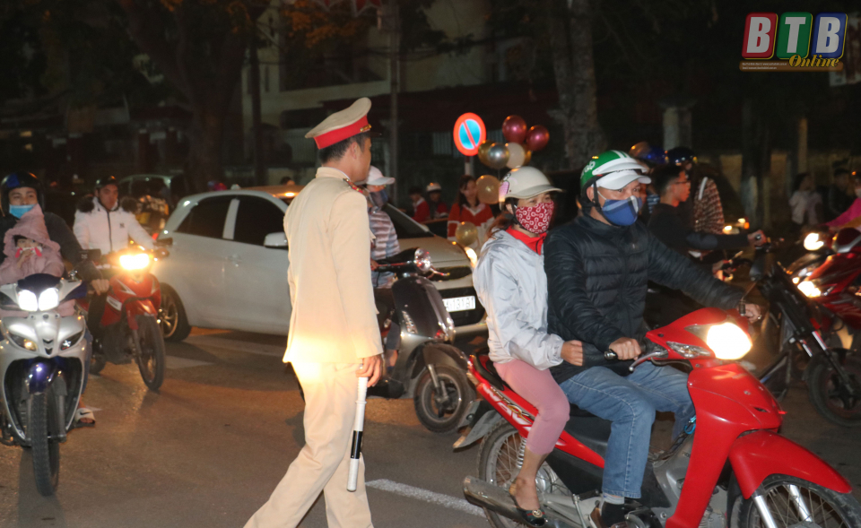 Càng về khuya tiết trời càng se lạnh, nhưng dòng người vẫn nườm nượp đổ về khu vực Nhà thờ chính tòa Thái Bình để đón Giáng sinh. Nhiều đôi bạn trẻ cũng nhân dịp này đến đây cùng nhau ghi lại những khoảng khắc đẹp thông qua những bức hình mùa Giáng sinh. Dù lượng người đổ về Nhà thờ chính tòa Thái Bình rất đông nhưng với sự nỗ lực và chuẩn bị hỗ trợ kỹ lưỡng của các lực lượng chức năng, nhất là sự vào cuộc tích cực của lực lượng cảnh sát giao thông thành phố Thái Bình nên, giao thông thông suốt, an ninh trật tự được bảo đảm.