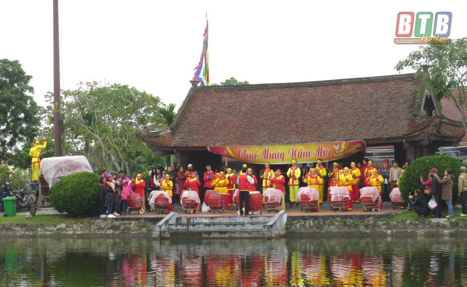Màn trống hội tạo nên không khí vui tươi, phấn khởi tại lễ hội chùa Keo trong dịp đầu xuân năm mới.