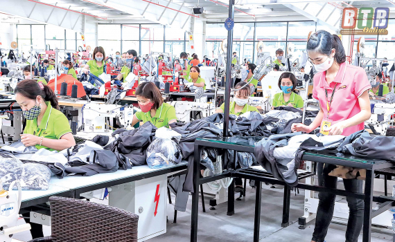 Sản xuất tại nhà máy MXP7 (Công ty Cổ phần Sản xuất hàng thể thao MXP). Ảnh: Thành Tâm