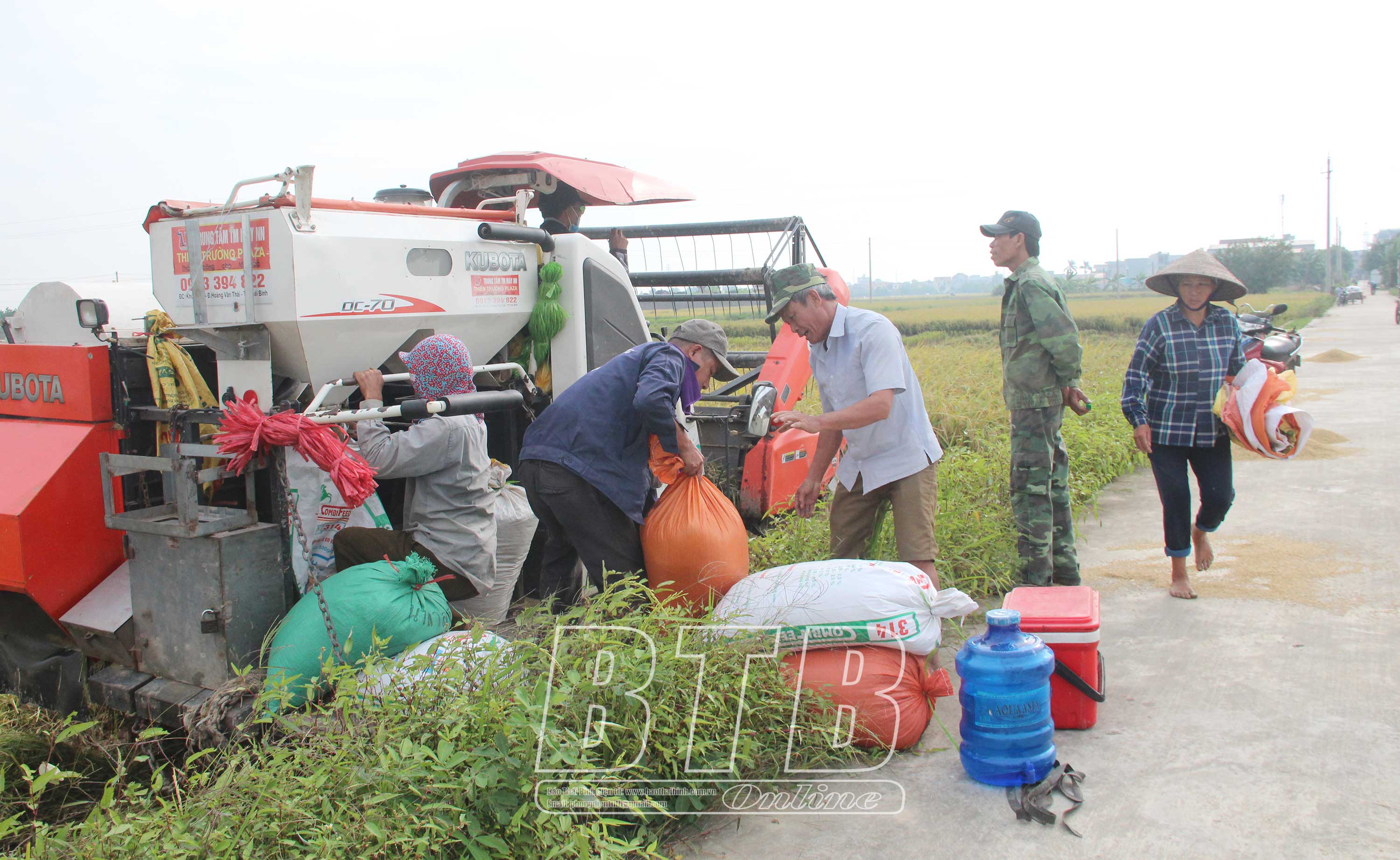 Thu hoạch lúa mùa ở Thái Thụy