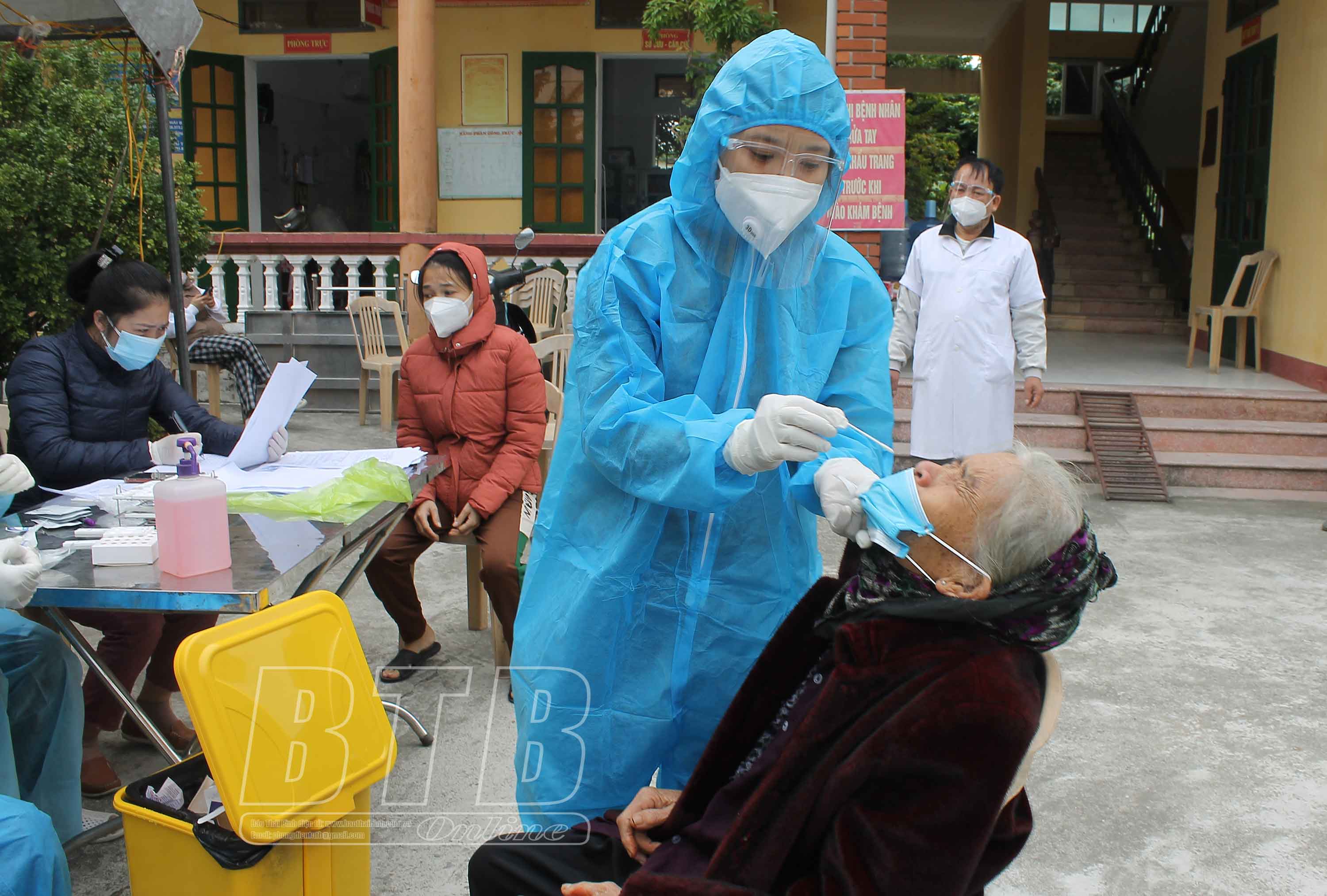 Thực hiện xét nghiệm nhanh sàng lọc Covid-19 cho toàn bộ người dân thôn Hoàng Xá, thôn Thái, xã Nguyên Xá (Vũ Thư).