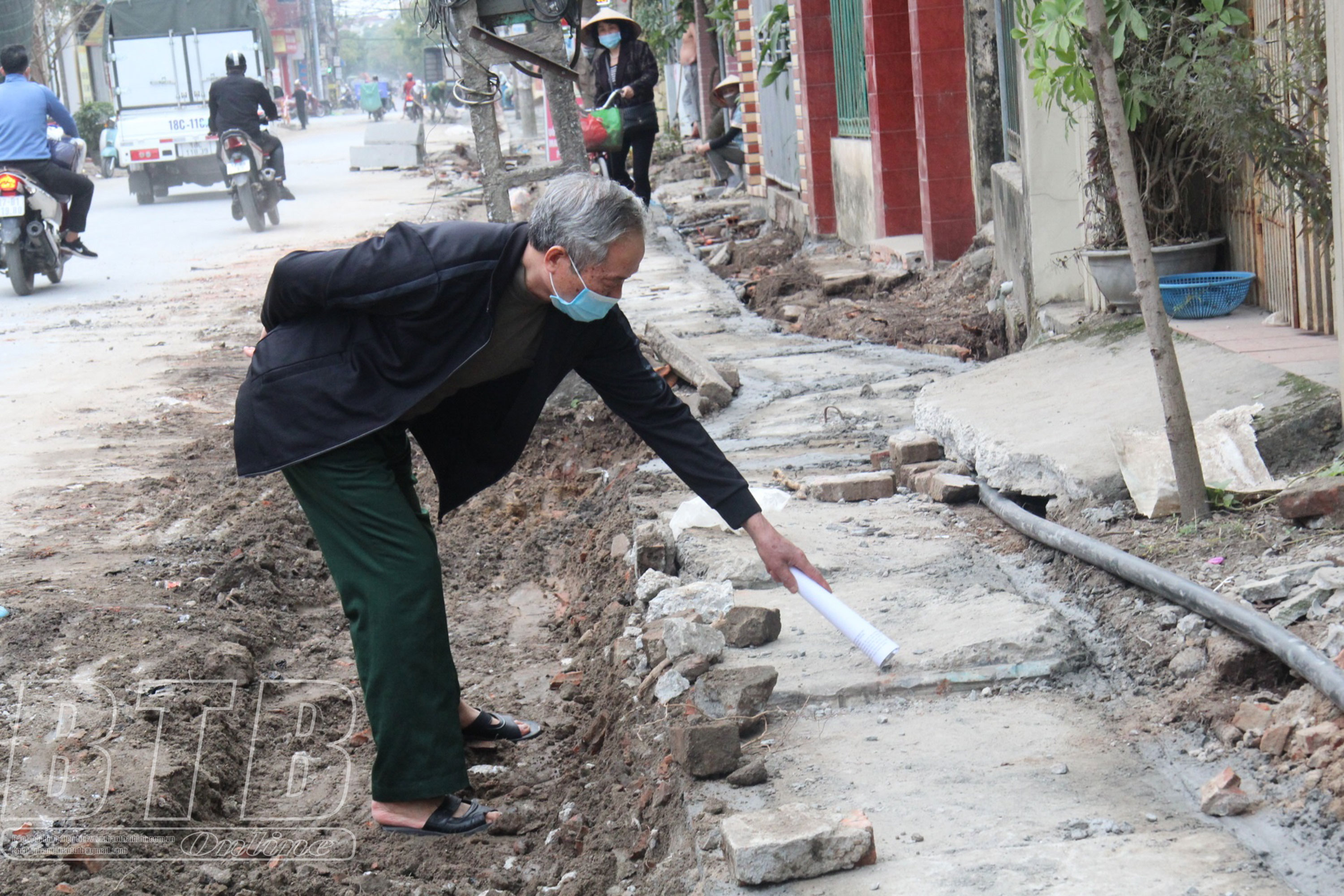 Ông Phạm Ngọc Vị, Bí thư Chi bộ tổ dân phố số 22, phường Kỳ Bá khẳng định: Được thành phố cải tạo nâng cấp tuyến đường chúng tôi rất phấn khởi nhưng trong quá trình thi công cải tạo các hạng mục cống, rãnh thoát nước trên một số đoạn của tuyến đường không được kiểm soát về chất lượng, không bảo đảm tiêu chuẩn của thiết kế, một số đoạn thoát nước chưa thông thoáng, bùn và rác dưới lòng cống không được nạo vét triệt để; những tấm bê tông được đào lên vỡ vụn khắp nơi, trông giống như một chiếc áo chắp vá. Chúng tôi đề nghị thành phố có biện pháp chấn chỉnh.