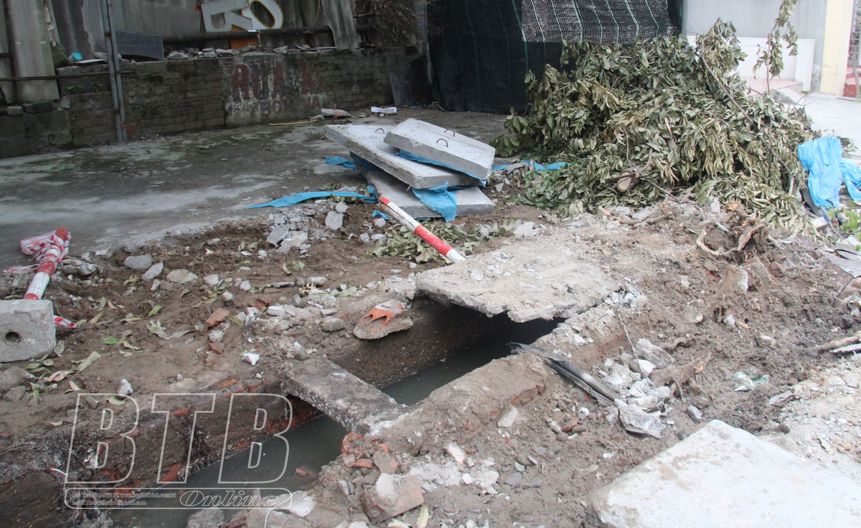 Một đoạn cống đã hoàn thành nhưng làm mất mỹ quan đô thị, chưa bảo đảm chất lượng.