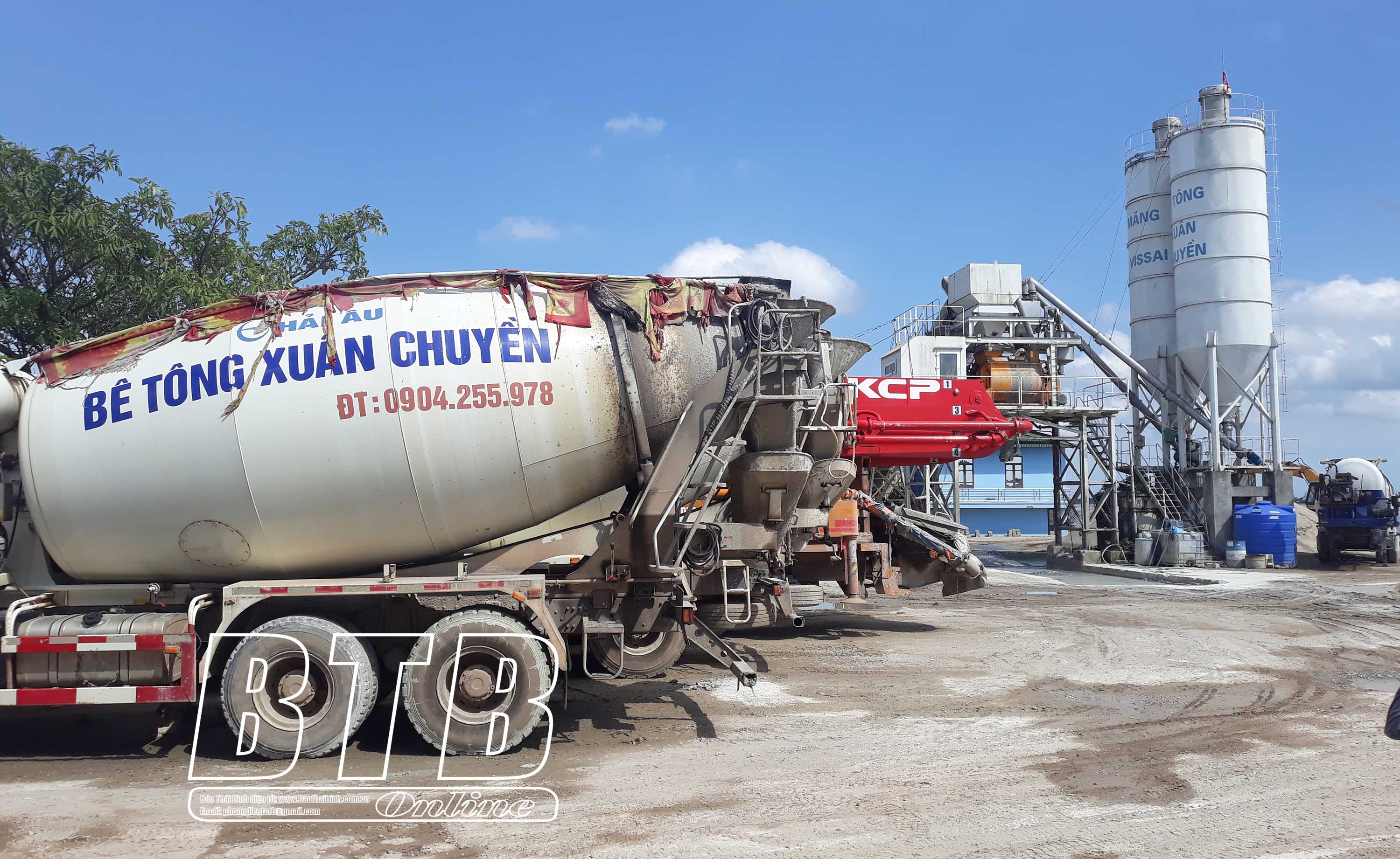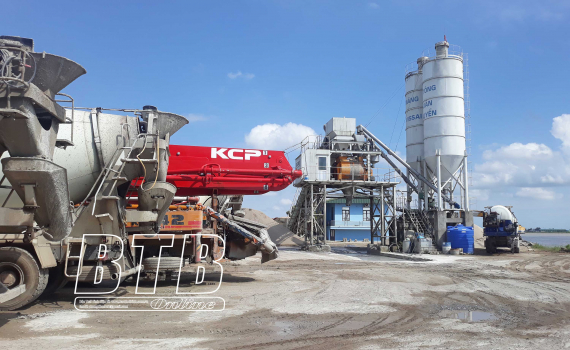 Xe bồn xếp hàng tại khu vực sản xuất bê tông.