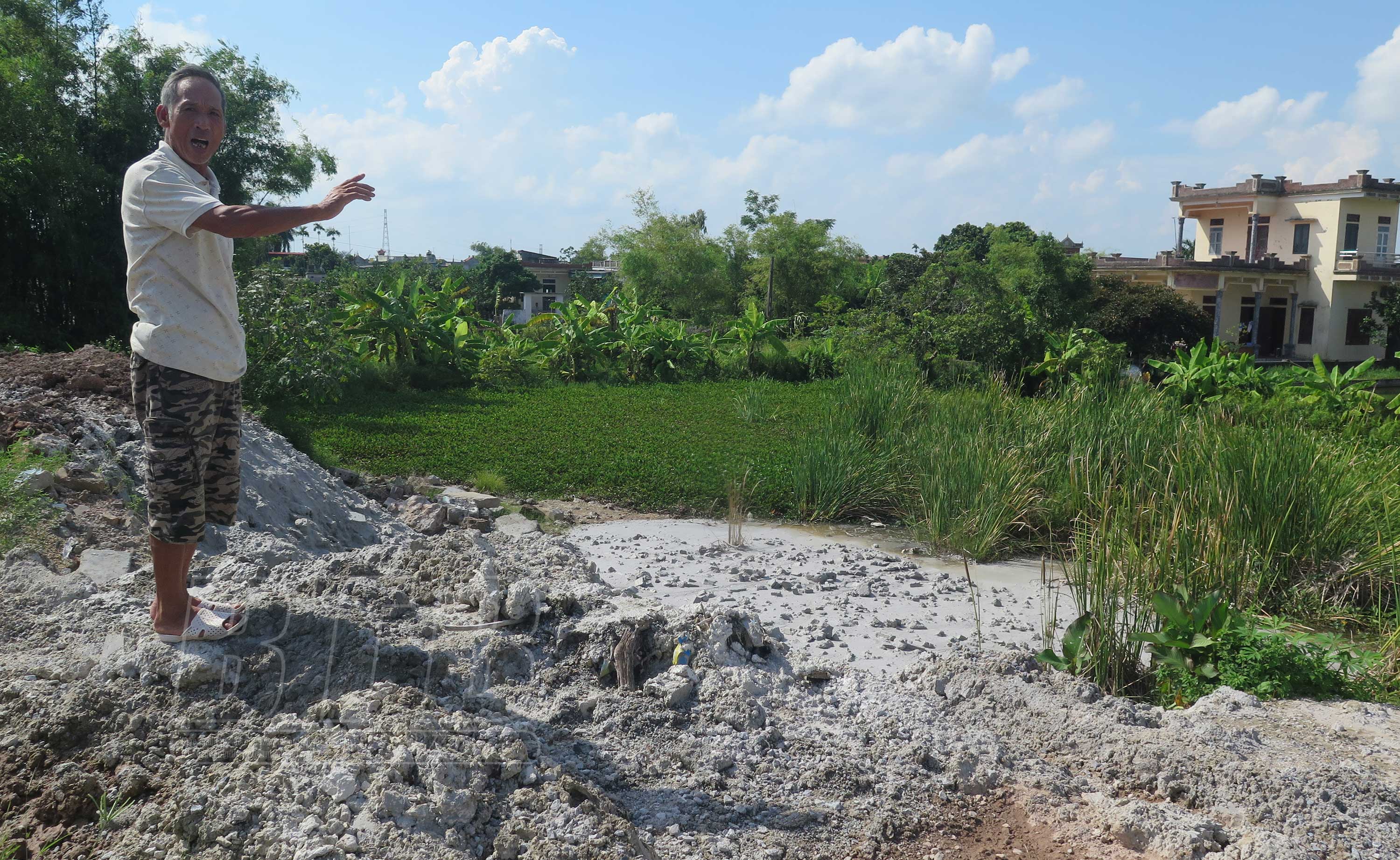 Bà Phan Thị Hiền, 76 tuổi, thôn Nguyệt Giám bức xúc cho biết: Sự việc diễn ra từ năm 2017 khi Công ty TNHH Xuân Chuyền đặt máy trộn bê tông tươi, sản xuất gạch không nung xả thải các chất độc hại ra môi trường. Cùng với cát, đá đổ cao hơn mặt đê, tiếng ồn của máy móc hoạt động suốt ngày đêm kèm theo khói bụi khiến cuộc sống người dân quanh đây bị xáo trộn, ăn không ngon, ngủ không yên. Tôi là người ở gần khu vực sản xuất của Công ty nhất nên ngày nào cũng phải đóng kín cửa bởi đống cát, đống đá cao như núi chỉ cần một cơn gió sẽ không khác gì rê thóc để bụi bay vào nhà. Cùng với đó là ảnh hưởng đến giao thông, gây hư hỏng mặt đường, gây mất an toàn cho người và phương tiện tham gia giao thông. Cụ thể, trong quá trình vận chuyển và sản xuất, doanh nghiệp này đã để xảy ra nhiều vụ tai nạn gây thương vong. Đặc biệt, trạm trộn bê tông lại gần khu vực lấy nước nguồn của nhà máy nước sạch cung cấp cho toàn xã khiến chúng tôi không khỏi lo lắng. Đã nhiều lần người dân làm đơn kiến nghị đến đơn cầu cứu chính quyền các cấp song mọi việc không có chuyển biến.