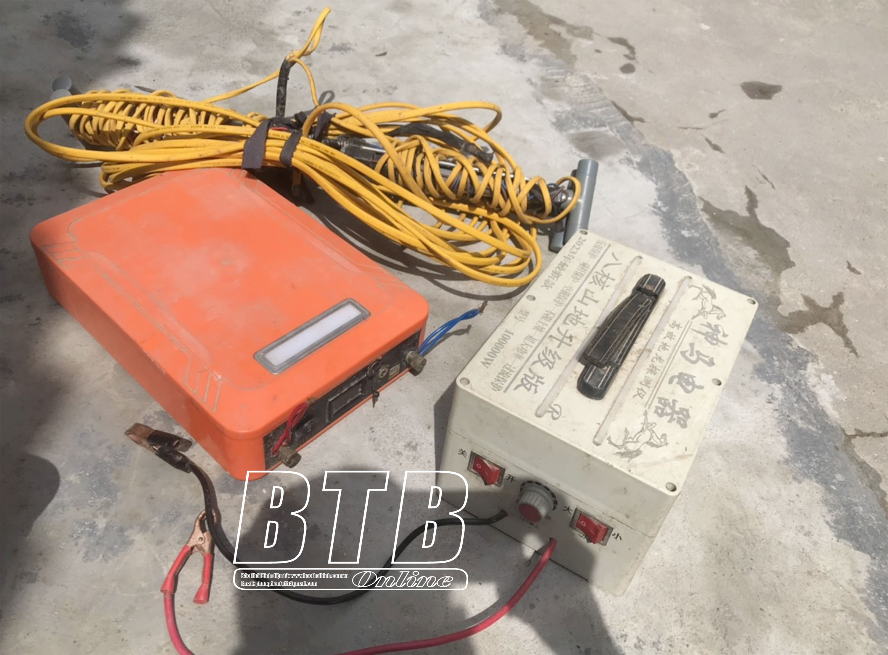 Một trường hợp ở xã Hồng Lĩnh (Hưng Hà) sử dụng bộ kích điện để bắt giun đất.