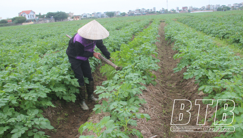 Nông dân xã Vũ Lạc (thành phố Thái Bình) chăm sóc khoai tây.