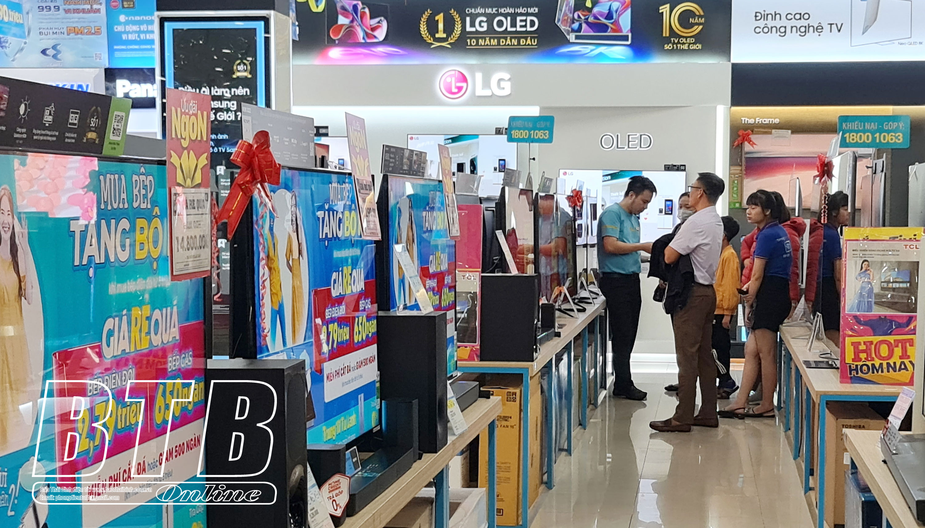 Anh Nguyễn Duy Đông, quản lý siêu thị chia sẻ: Những ngày qua, sức tiêu thụ hàng hóa tăng 20% so với cùng kỳ tháng trước và dự báo càng gần đến tết Nguyên đán nhu cầu mua sắm sẽ tiếp tục tăng cao hơn. Để đáp ứng nhu cầu thị trường và đón bắt cơ hội tăng trưởng doanh thu, chúng tôi đã lên kế hoạch nhập đủ lượng hàng, đa dạng chủng loại, trong đó tăng nhập những mặt hàng có sức mua cao dịp tết như ti vi, dàn âm thanh, tủ lạnh, điện thoại, máy giặt, đồ gia dụng. Chúng tôi cũng có kế hoạch kéo dài thời gian mở cửa siêu thị, tăng ca và bố trí thêm nhân viên tư vấn bán hàng, thu ngân tại siêu thị, đồng thời tuyển thêm cộng tác viên giao hàng cho khách.
