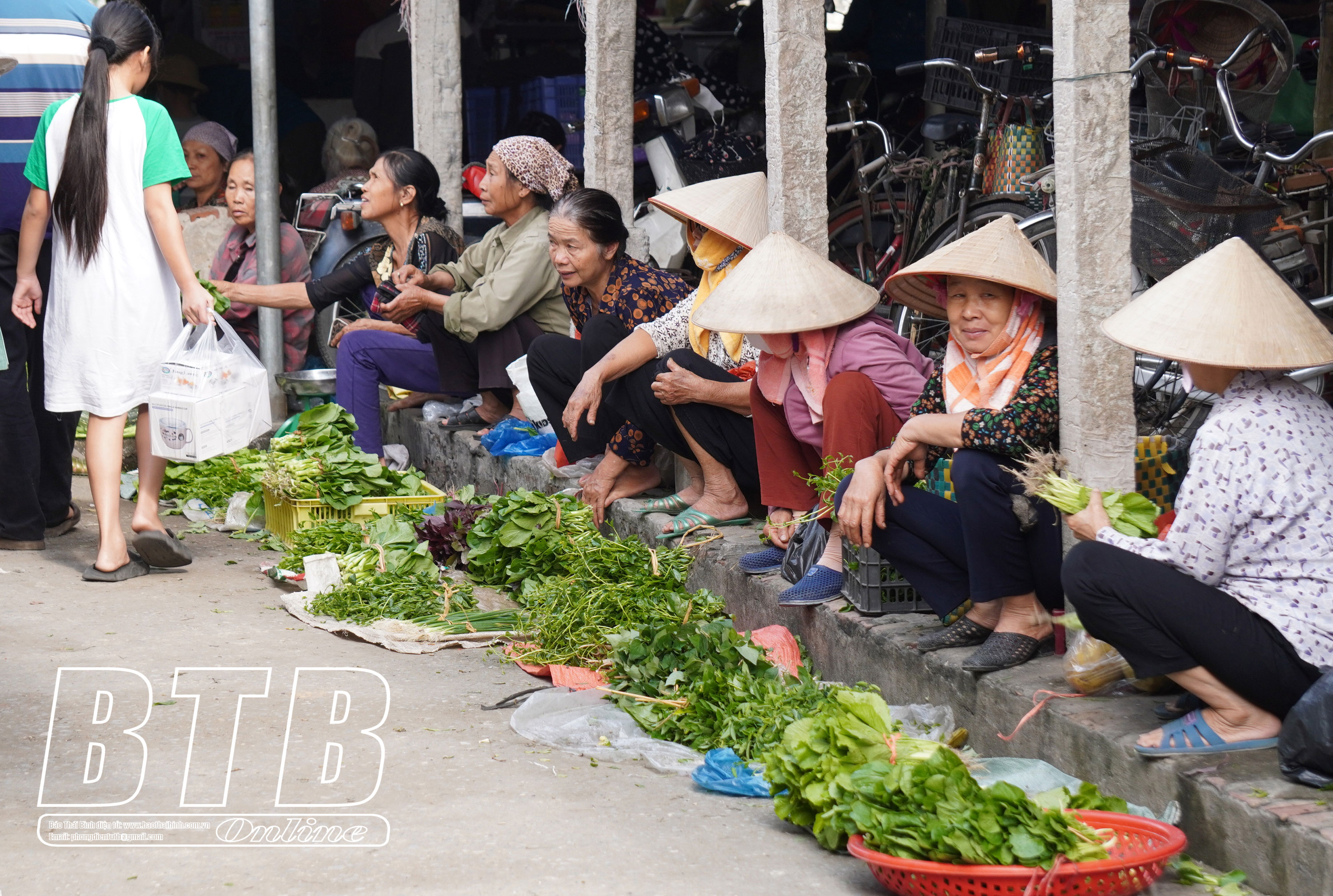 Chợ dân sinh tạo việc làm, thu nhập và bảo đảm ổn định cuộc sống cho nhiều người dân. Trong ảnh: Các nông dân bán rau tại chợ Thông, xã Hòa Bình, huyện Vũ Thư.