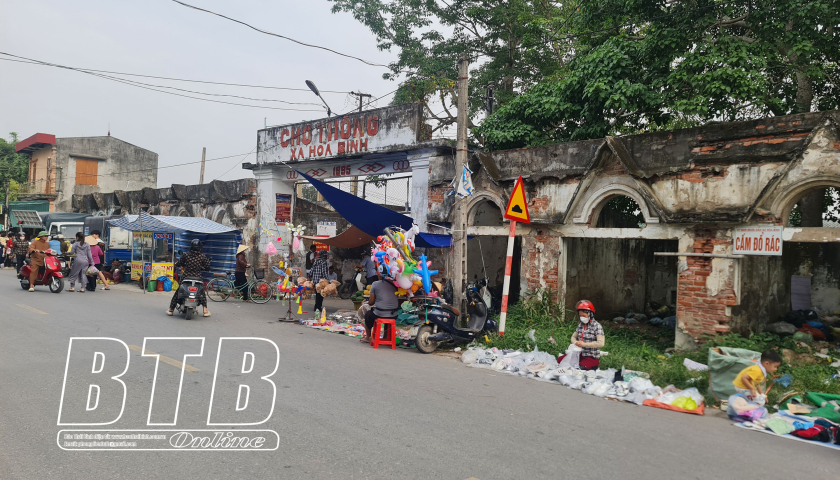 Chợ Thông, xã Hòa Bình (Vũ Thư) xuống cấp nghiêm trọng và chậm được đầu tư, tiểu thương tràn cả ra đường để kinh doanh.