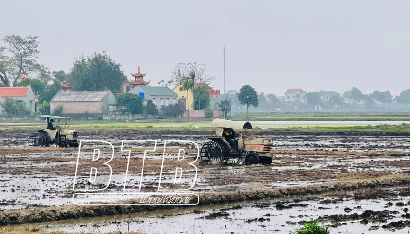 Từ ngày 1/2 (mùng 4 tết) nông dân huyện Hưng Hà bắt đầu xuống đồng gieo cấy lúa xuân.