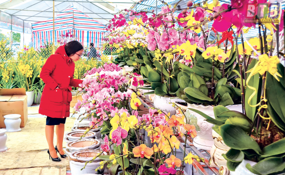 Dạo một vòng quanh chợ hoa, du khách dễ dàng bắt gặp hình ảnh những cành đào phơn phớt hồng, các chậu quất thế sai quả, bưởi cảnh, phật thủ, các loại hoa lan, ly, hồng, thược dược, salem... được chăm chút khéo léo.