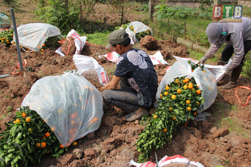 Quất được chằng buộc kỹ càng trước khi vận chuyển.