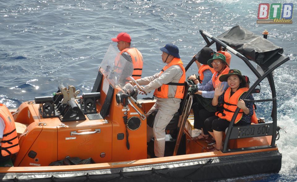 Phóng viên Thúy Hằng (Báo Hậu Giang) và Việt Quỳnh (Báo Lâm Đồng), Hồng Diên (Báo Xây Dựng) có lẽ là những người thấm thía nhất cảm giác này khi phải oằn mình vật lộn với những cơn say sóng xuyên suốt hải trình. Quỳnh và Hằng gần như không ăn uống được gì, phải truyền dịch liên tục và nhờ tới sự chăm sóc của bác sĩ trên tàu. Gạo rang, cơm cháy, lương khô hay cháo loãng... là thức ăn để đối phó tạm thời với cơn say nhưng ăn xong rồi cũng nôn ra hết. Điều khiến tôi khâm phục nhất ở Hằng, Quỳnh hay các đồng nghiệp khác trong đoàn công tác là dù có bị say sóng nằm bẹp một chỗ, nhưng chỉ cần cảm thấy đỡ hơn chút là lại lên boong trò chuyện, tâm sự với cán bộ, chiến sĩ trên tàu để tìm hiểu thông tin hay mỗi lần nghe thông báo đến đảo là bật dậy, ôm máy quay, máy ảnh, mặc áo phao chuẩn bị xuống xuồng, háo hức lên đảo như chưa từng say sóng.