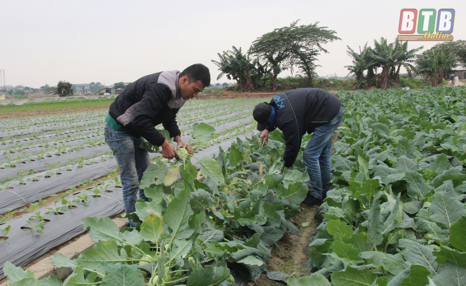 Người dân xã Quỳnh Hải (Quỳnh Phụ) ra đồng trong tâm thế hân hoan vì rau được giá.
