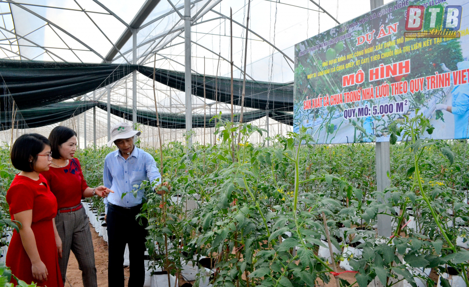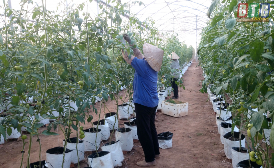 Mô hình tích tụ ruộng đất, trồng cà chua trong nhà kính của Công ty Cổ phần Thương mại tổng hợp Toan Vân.