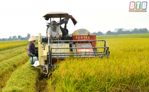 Thu hoạch lúa mùa tại xã Tân Phong (Vũ Thư).