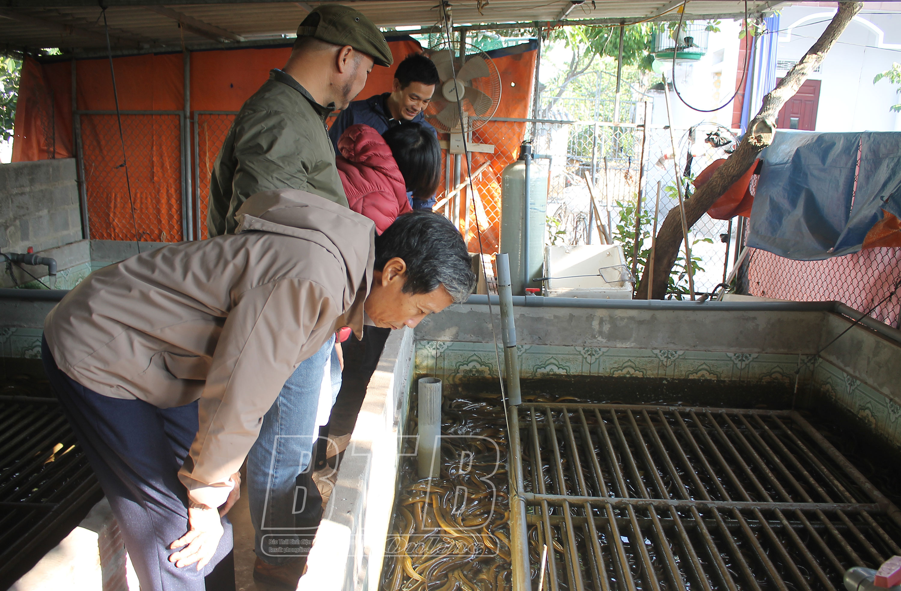 Cán bộ, hội viên nông dân xã Vũ Đoài tham quan mô hình nuôi lươn không bùn của gia đình anh Hoán và anh Hai.