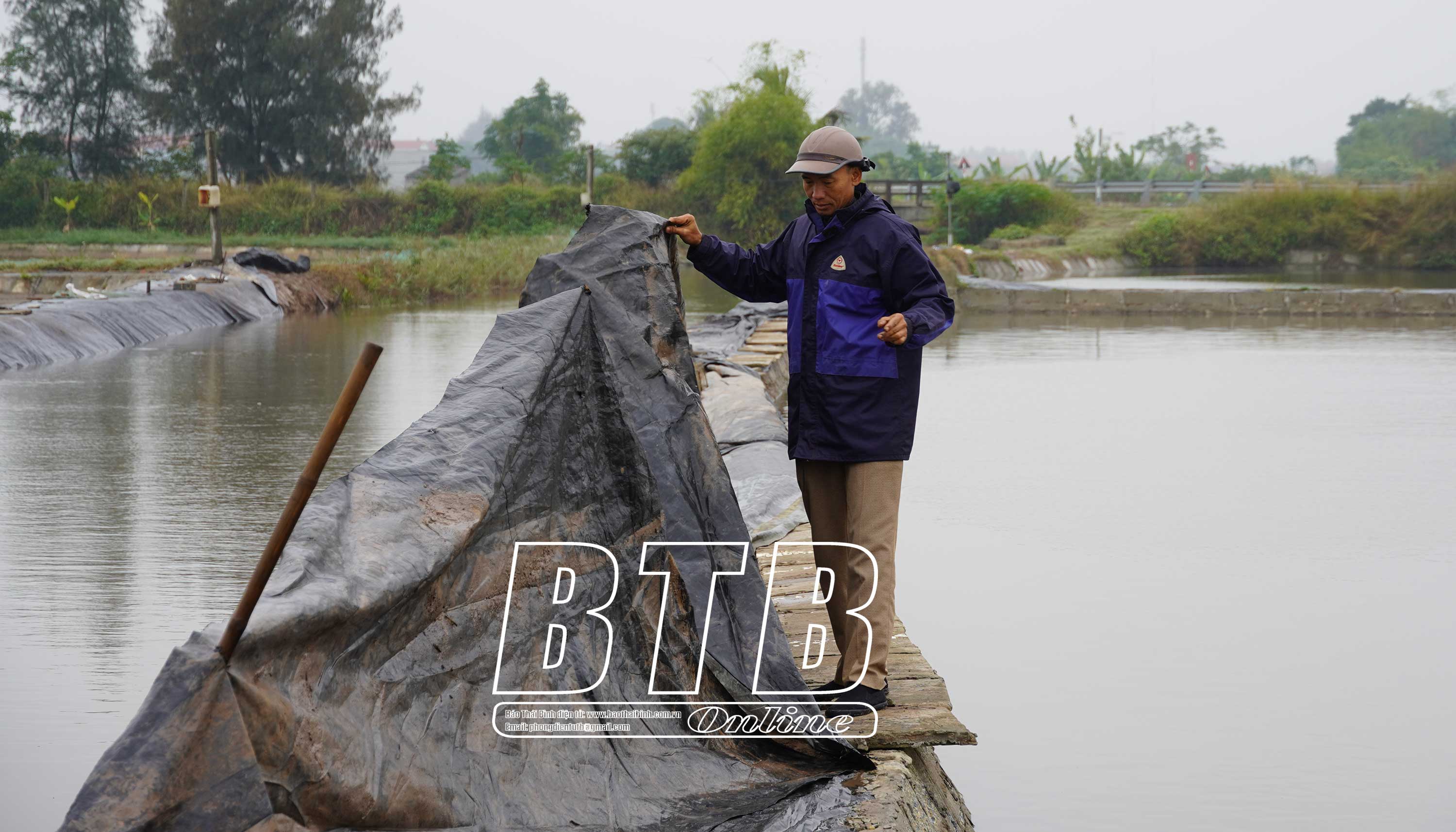 Thụy Trường là một trong những xã phát triển mạnh kinh tế biển. Xã có 287ha NTTS, giá trị sản xuất đạt 77 tỷ đồng/năm. Hiện Thụy Trường còn 160ha cá vược, cá song, cua để xuất bán trong dịp tết Nguyên đán. Vì vậy, các hộ NTTS rất chú trọng công tác chăm sóc, phòng, chống rét cho các đối tượng nuôi. Anh Nguyễn Thanh Tùng, Giám đốc HTX nuôi trồng thủy sản Đồng Xuân (Thụy Trường) chia sẻ: HTX có 120 hộ NTTS với tổng diện tích ao nuôi hơn 26ha, đối tượng nuôi chủ yếu là cá vược, cá song, cua, tôm... Dịp tết năm nay, HTX dự kiến sẽ cung cấp ra thị trường từ 150 - 200 tấn cá thương phẩm. Để tránh thiệt hại khi diễn biến thời tiết bất lợi, HTX tuyên truyền các hộ NTTS trong những ngày nhiệt độ từ 12 - 15 độ C, sử dụng máy sục khí oxy khoảng 8 - 10 tiếng/ngày; bổ sung dưỡng chất để tăng sức đề kháng; cấp thêm nước cho ao nuôi, bảo đảm độ ấm ở tầng đáy. Đặc biệt, khi nhiệt độ xuống dưới 10 độ C kèm theo mưa phùn kéo dài, chúng tôi tuyên truyền các hộ NTTS căng bạt hướng Đông Bắc, sử dụng bóng đèn để phòng, chống rét cho thủy sản nuôi. Ông Phạm Hữu Tuyên cho biết: Tôi có 3.000m2 nuôi cá vược và cá song, cá đã đạt trọng lượng 1,4 - 1,6kg/con, dự kiến sẽ cung cấp ra thị trường hơn 3 tấn cá thương phẩm trong dịp tết này, doanh thu đạt khoảng 300 triệu đồng. Những ngày qua, tôi luôn chủ động theo dõi các bản tin dự báo thời tiết để điều chỉnh lượng thức ăn phù hợp, chủ động nâng mực nước ao nuôi lên 2m. Với phương châm “phòng hơn chống”, tôi chuẩn bị các loại vật tư như: tre, bạt, bóng đèn để phòng, chống rét cho cá. Kinh nghiệm 10 năm làm nghề NTTS, tôi thấy chỉ có căng bạt, sưởi ấm cho cá là phòng, chống rét cho đối tượng nuôi hiệu quả nhất. Khi nhiệt độ xuống dưới 10 độ C kéo dài 7 - 10 ngày, tôi thường dựng một tấm bạt lớn phía Đông Bắc, cứ 1m lại có một cọc chống. Để hai mép bạt cách mặt ao khoảng 30cm, tôi kết hợp hun trấu và đấu nối các bóng điện, nhiệt lượng từ bóng đèn tỏa ra hắt thẳng xuống mặt nước, với cách làm như thế, diện tích NTTS được bảo vệ an toàn.
