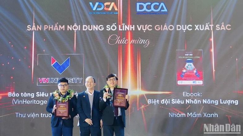 2 giải Sản phẩm nội dung số lĩnh vực giáo dục xuất sắc (Bảo tàng Siêu thực di sản Việt Nam - Thư viện Trường đại học VinUni, Ebook thiếu nhi “Biệt đội siêu nhân năng lượng" - nhóm Mầm Xanh)