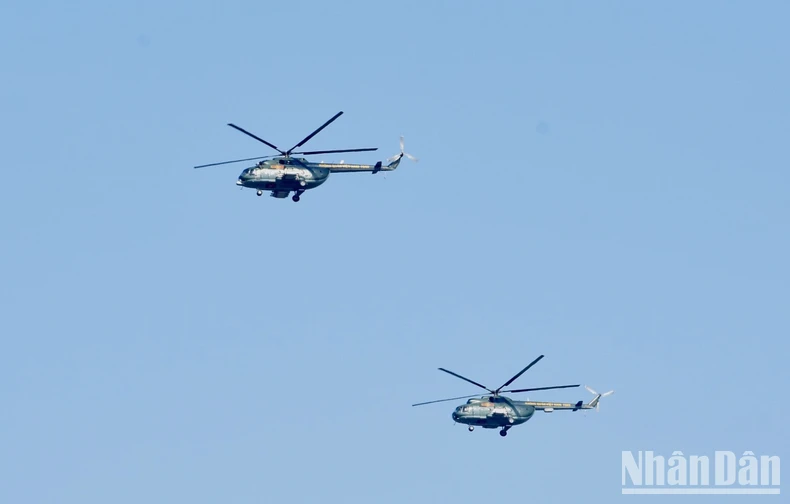 Trực thăng vũ trang tham gia cuộc diễn tập. (Ảnh: TRẦN HẢI).