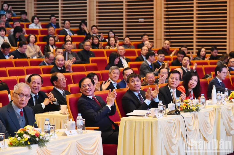 Các đồng chí lãnh đạo, nguyên lãnh đạo Bộ Ngoại giao, các đại sứ, trưởng các cơ quan đại diện Việt Nam ở nước ngoài, thủ trưởng các cơ quan, đơn vị chủ chốt thuộc Bộ Ngoại giao tham dự phiên bế mạc Hội nghị Ngoại giao lần thứ 32. (Ảnh: THỦY NGUYÊN).