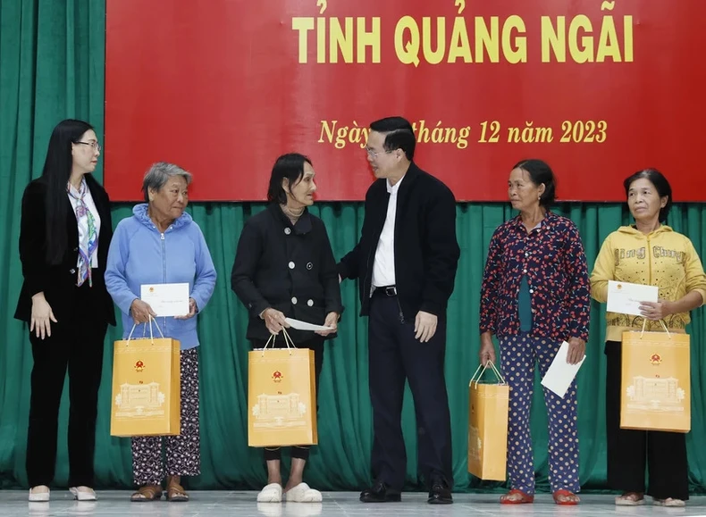 Ngày 23/12, trong chương trình thăm và làm việc tại tỉnh Quảng Ngãi, Chủ tịch nước Võ Văn Thưởng cùng Đoàn công tác Trung ương đã đến thăm Đảng bộ, nhân dân, các gia đình chính sách, gia đình có công với nước, gia đình có hoàn cảnh khó khăn tại xã Bình Thuận, huyện Bình Sơn.