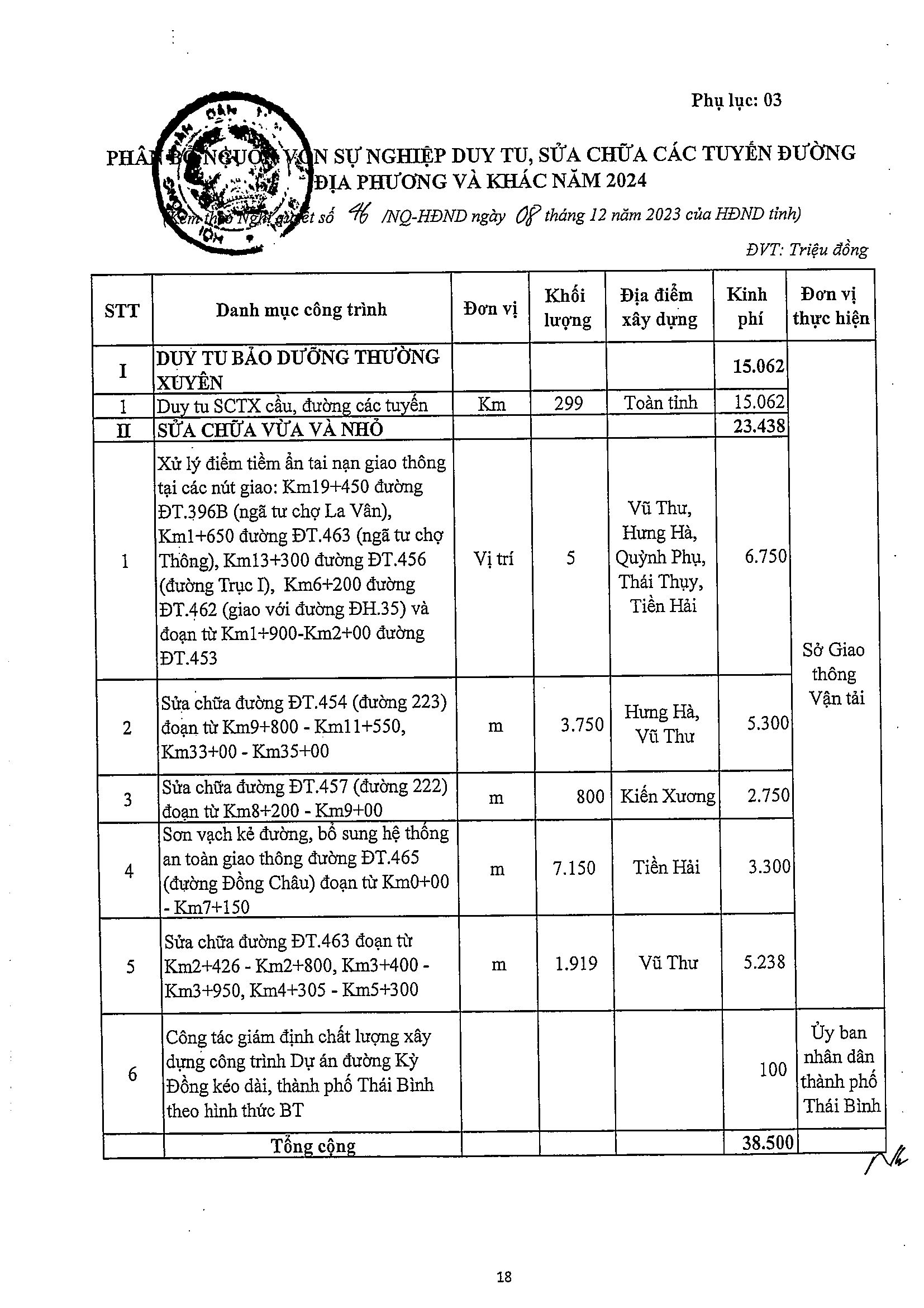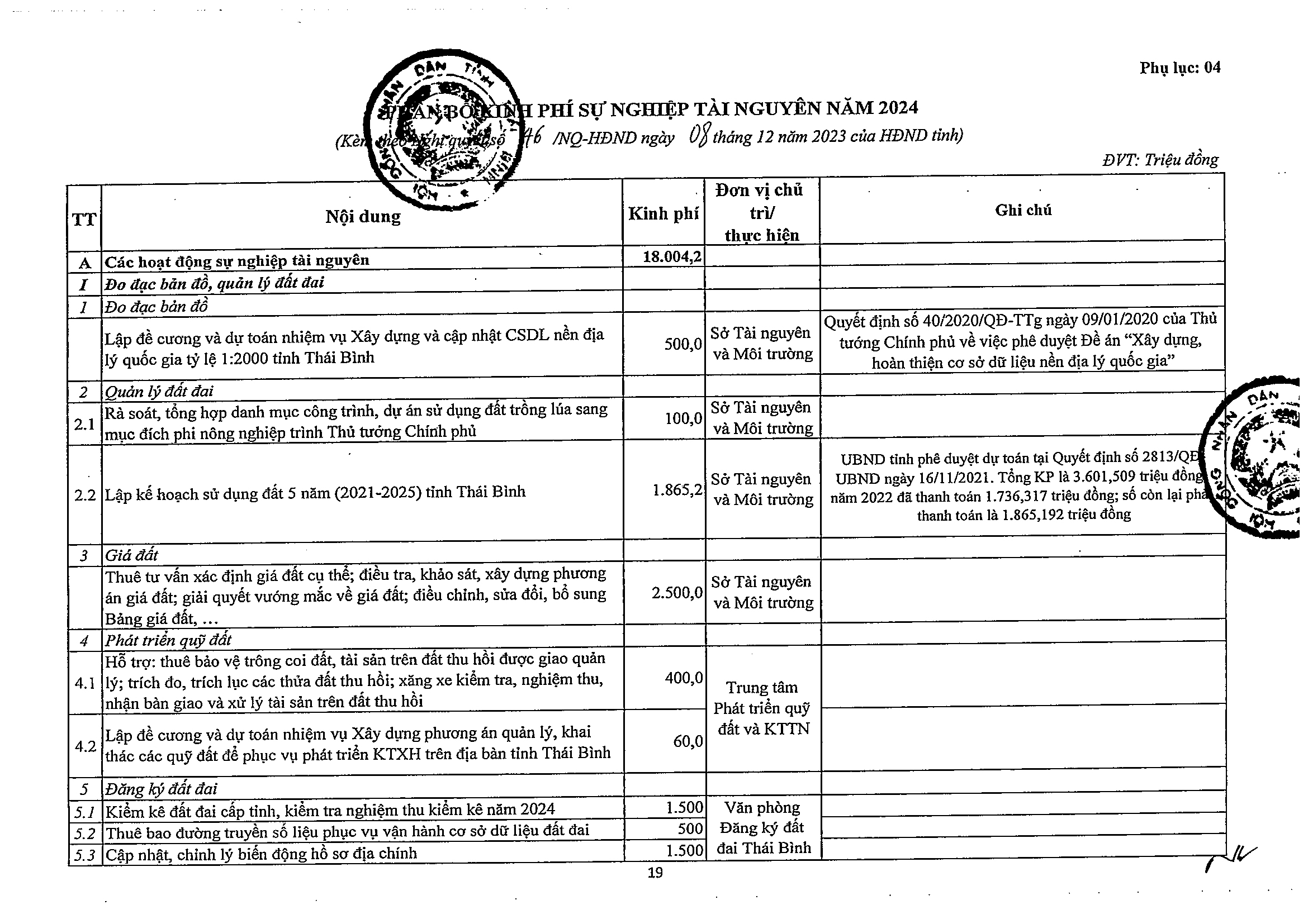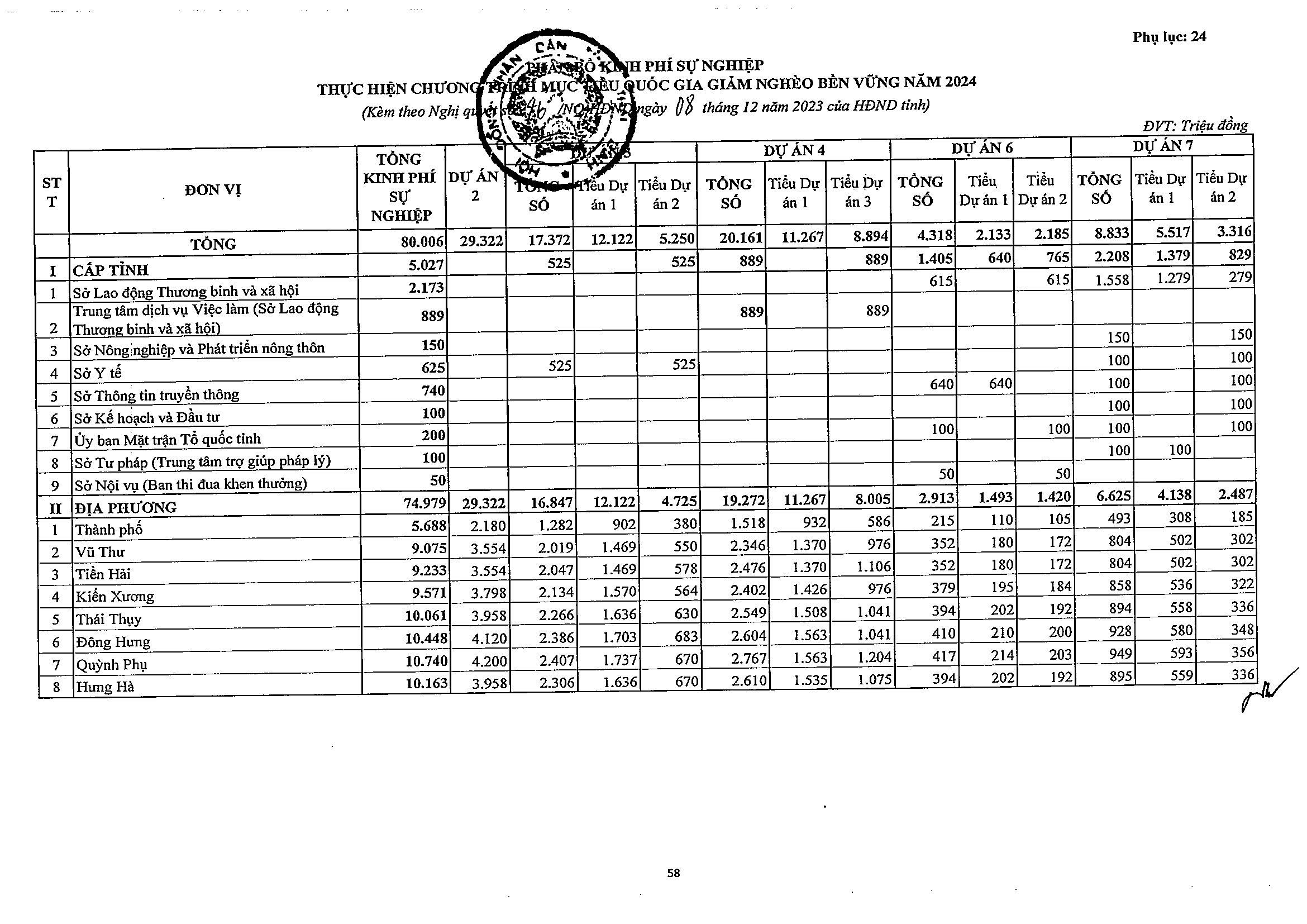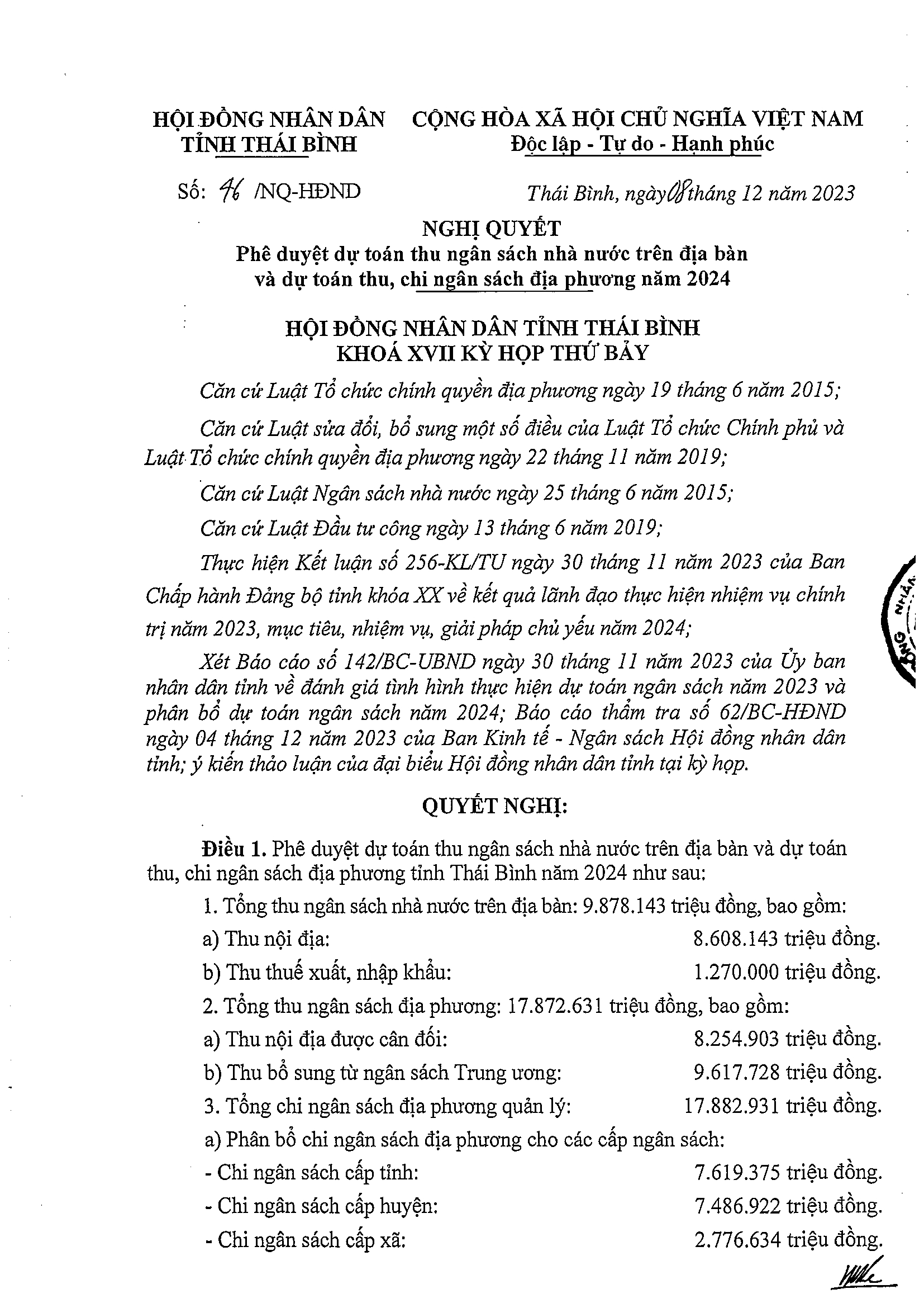 Nghị quyết số 46/NQ-HĐND phê duyệt dự toán thu ngân sách nhà nước trên địa bàn và dự toán thu, chi ngân sách địa phương năm 2024