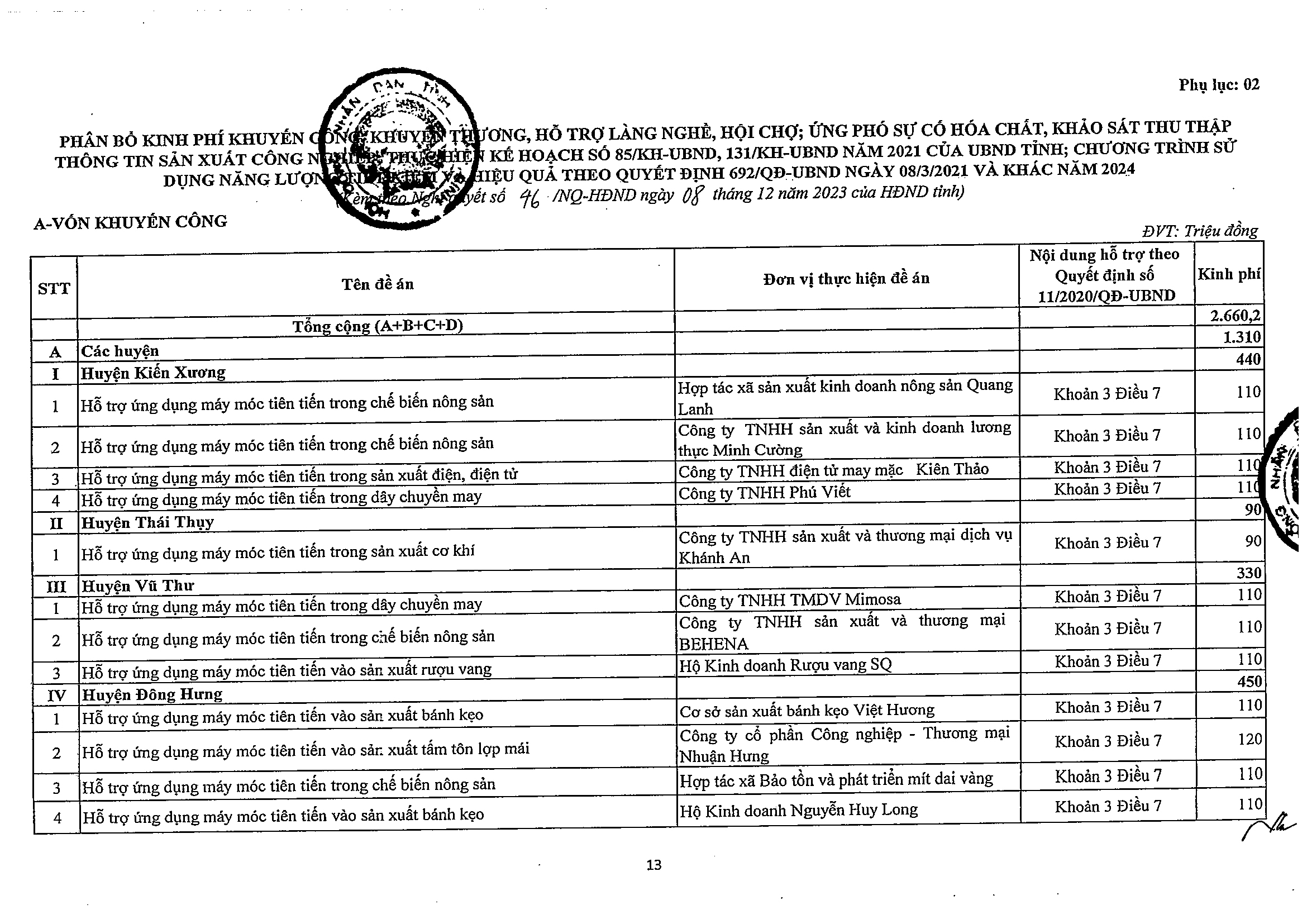 - Khởi công dự án đầu tư xây dựng sân golf Cồn Vành và dự án đầu tư xây dựng khu bến cảng hàng lỏng Ba Lạt
