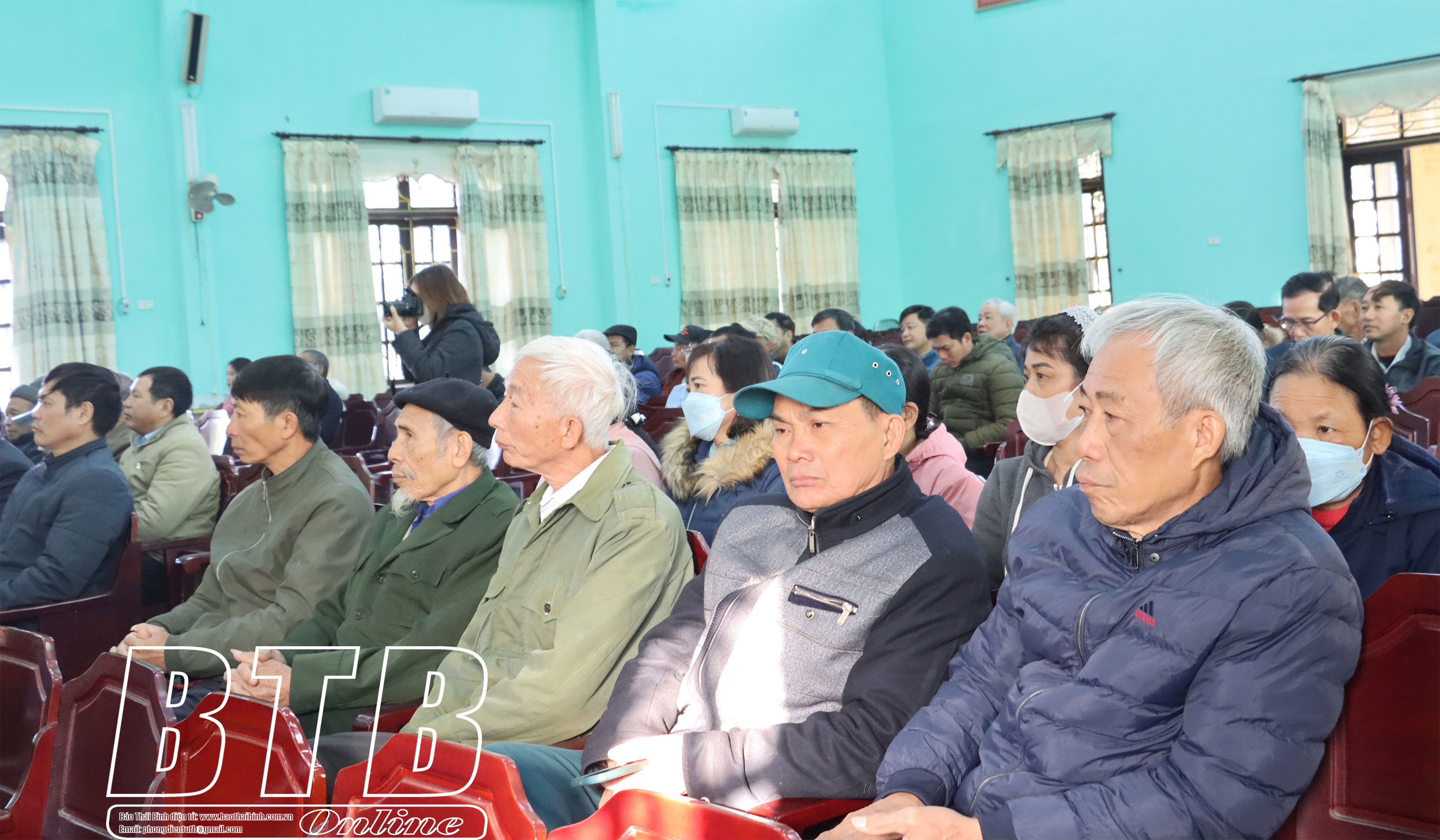 Các đại biểu HĐND tỉnh, HĐND huyện Hưng Hà dự hội nghị tiếp xúc cử tri tại điểm xã Tiến Đức.