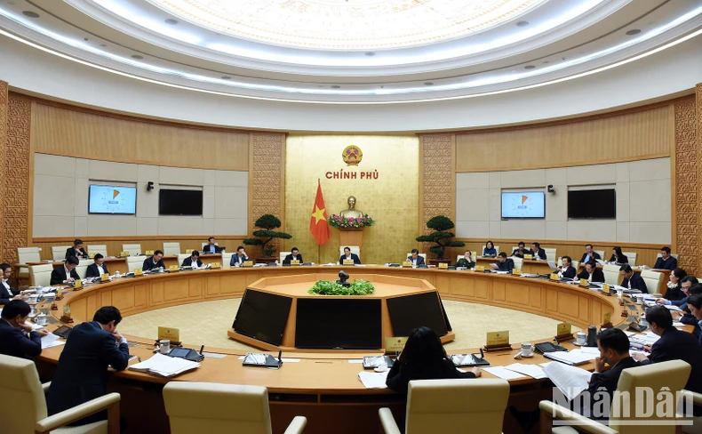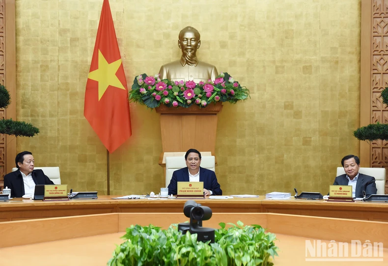 Thủ tướng Phạm Minh Chính chủ trì Phiên họp chuyên đề về xây dựng pháp luật tháng 12/2023. (Ảnh: TRẦN HẢI).