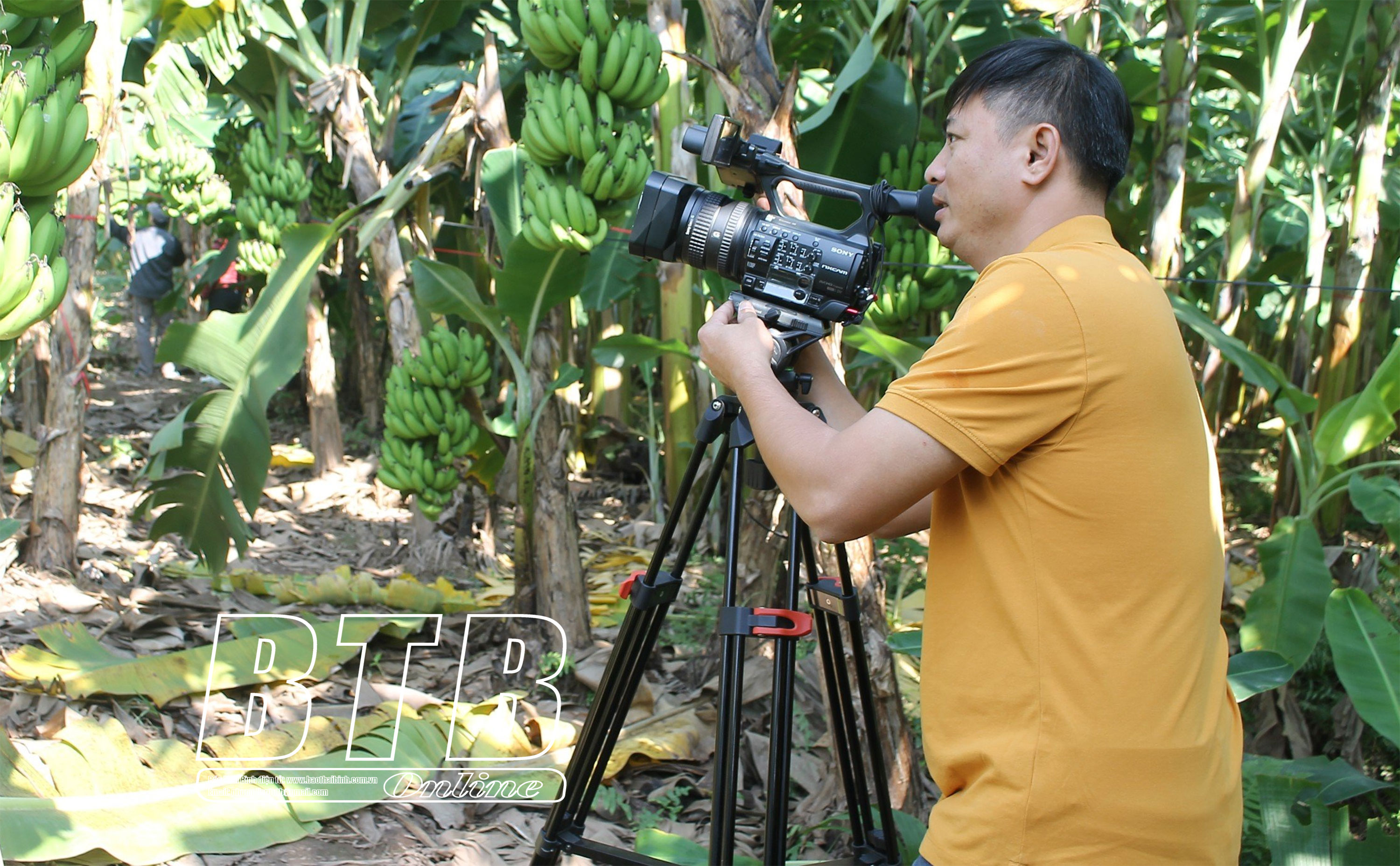 Kỹ thuật viên Đài TTTH huyện Vũ Thư tác nghiệp, sản xuất phóng sự truyền hình cộng tác với Báo Thái Bình.