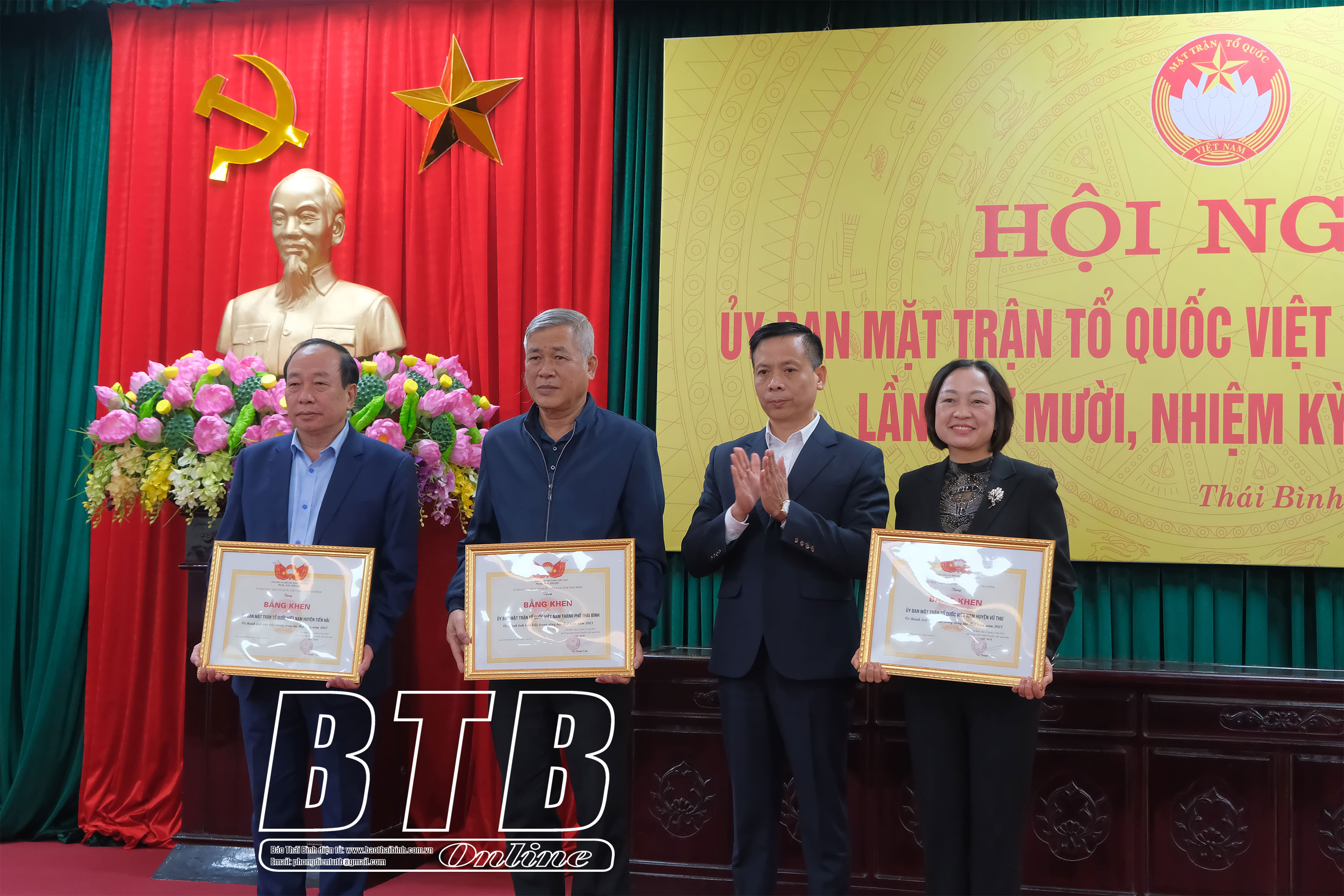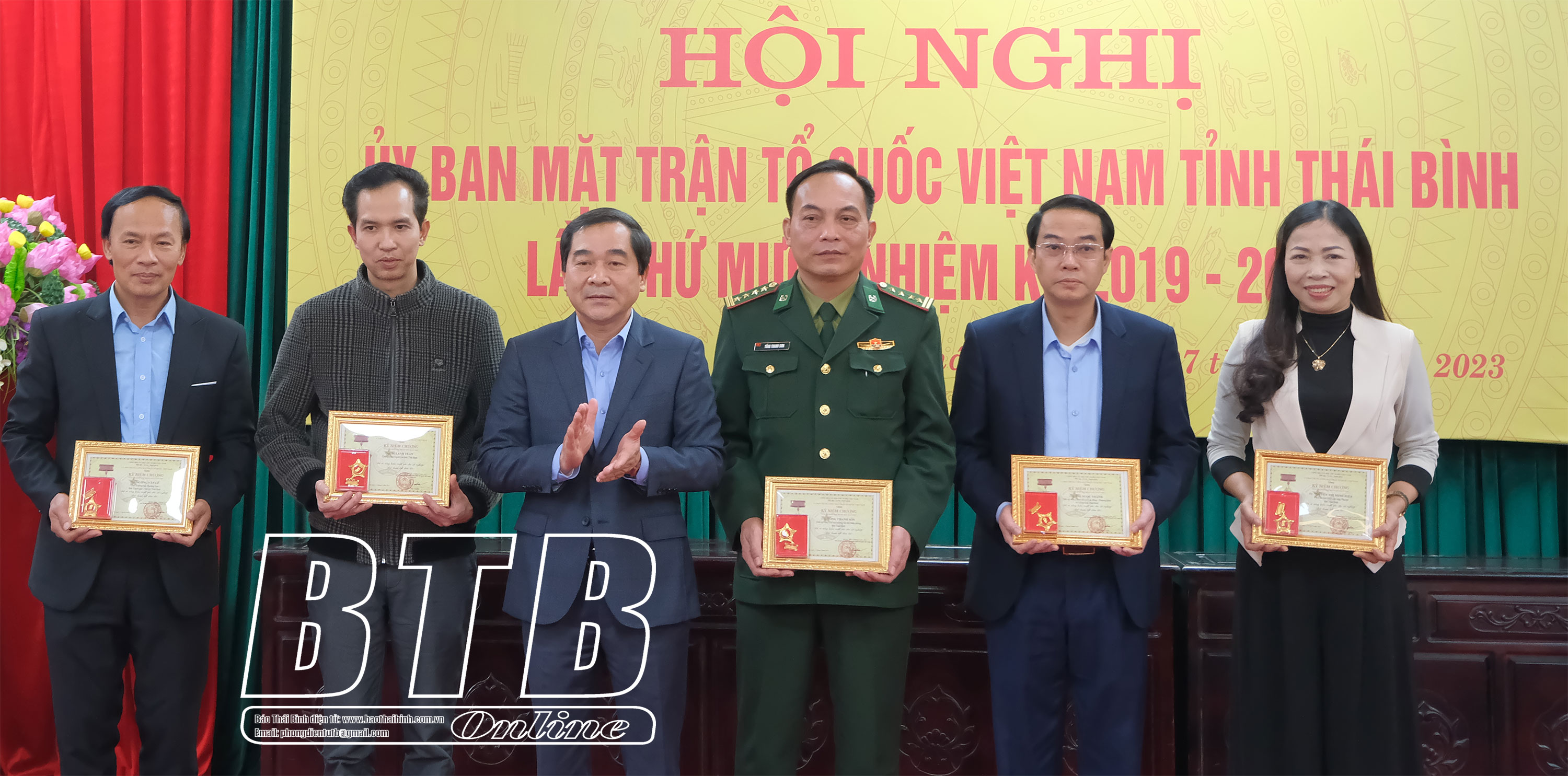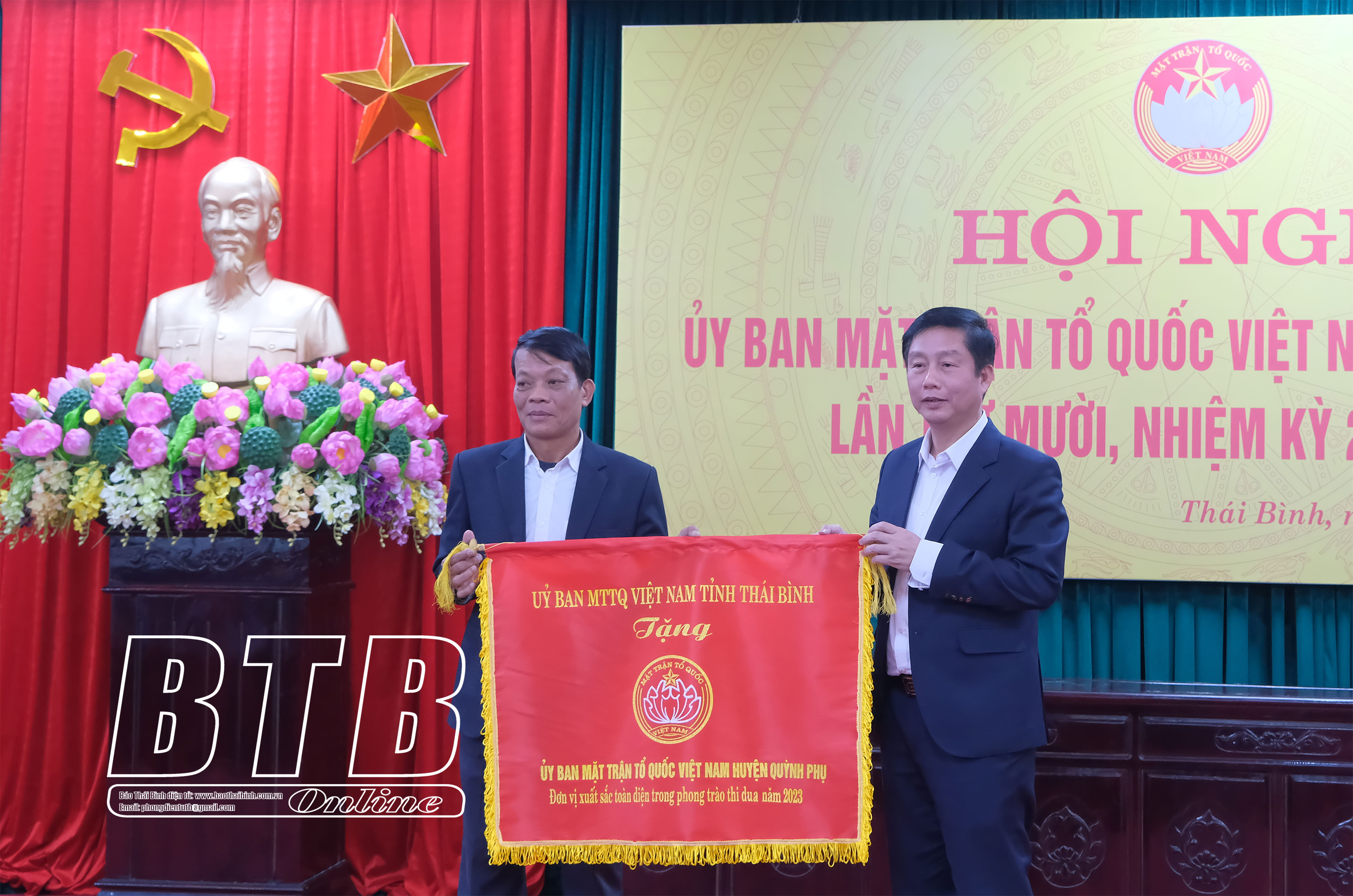 Đồng chí Nguyễn Tiến Thành, Phó Bí thư thường trực Tỉnh ủy, Chủ tịch HĐND tỉnh trao kỷ niệm chương “Vì sự nghiệp Đại đoàn kết dân tộc” cho các cá nhân tiêu biểu.Đồng chí Vũ Thanh Vân, Ủy viên Ban Thường vụ Tỉnh ủy, Chủ tịch Ủy ban MTTQ tỉnh trao cờ thi đua đơn vị xuất sắc dẫn đầu năm 2023 cho Ủy ban MTTQ huyện Quỳnh Phụ.
