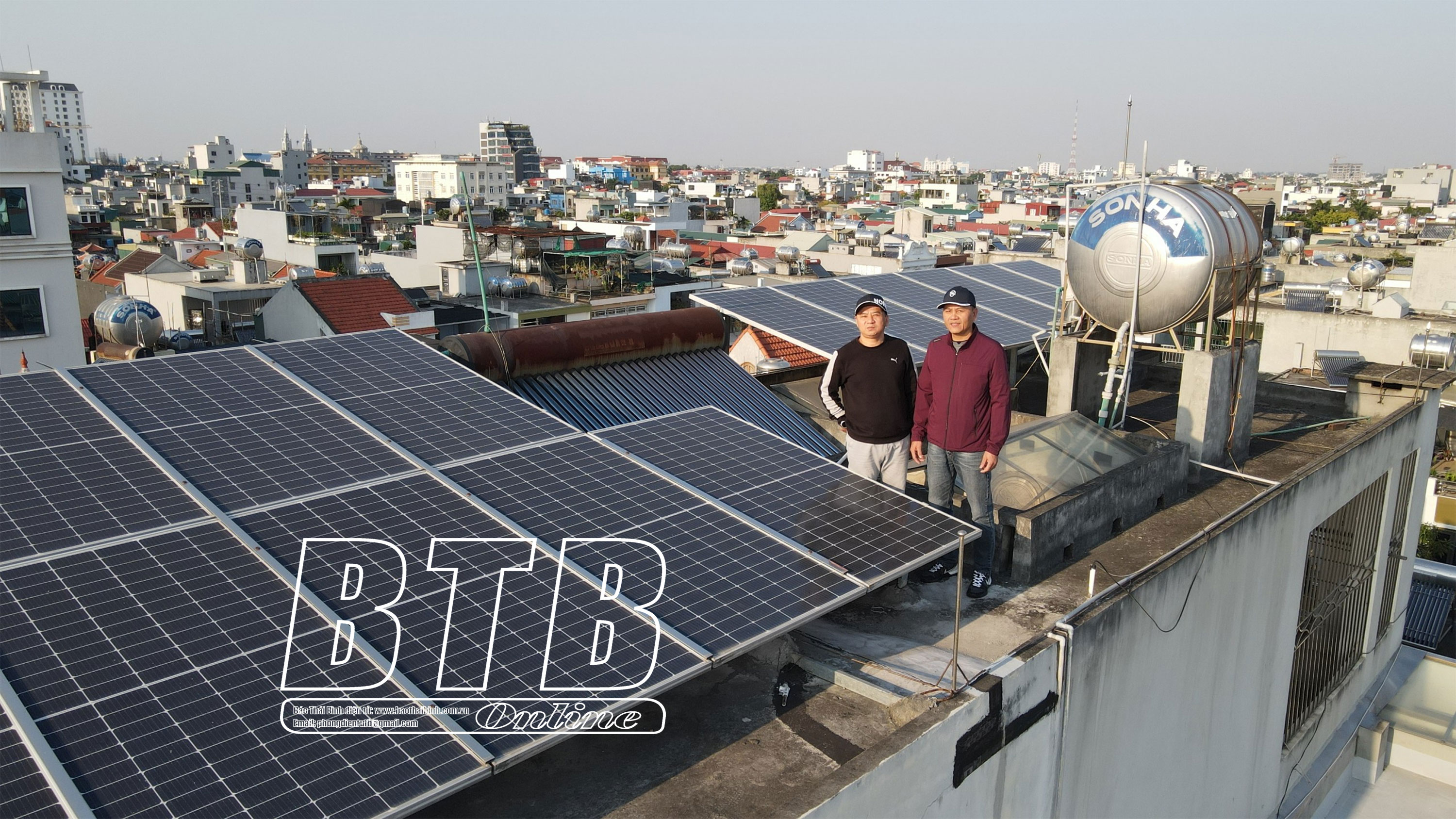 Năm 2020, ông Nguyễn Văn Dương, tổ 23, phường Trần Lãm (thành phố Thái Bình) mạnh dạn đầu tư lắp đặt điện mặt trời áp mái Tổng kinh phí lắp đặt gần 80 triệu đồng. Hiện tại, gia đình ông Dương có 4 thành viên. Các thiết bị sử dụng điện mà gia đình thường dùng là điều hoà, tủ lạnh, bình nóng lạnh, tivi,…Trước khi lắp đặt điện mặt trời áp mái, hàng tháng, gia đình ông trả tiền điện trên 1 triệu đồng. Còn bây giờ, gia đình ông không chỉ tiết kiệm được tiền điện mà còn thu về khoảng 200.000 đồng/tháng nhờ phần điện dư phát trên lưới điện được công-tơ đo đếm 2 chiều bán lại cho ngành điện.