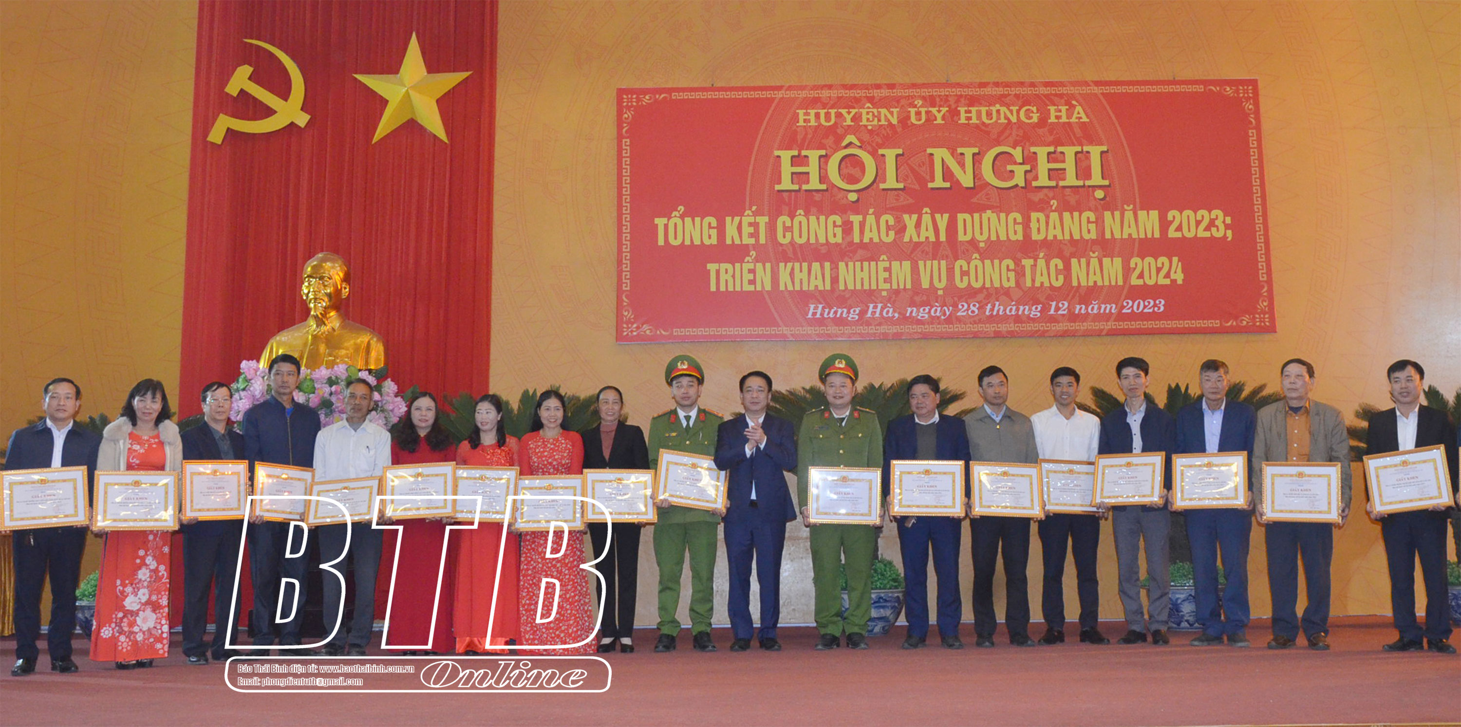 Chiều ngày 28/12, Huyện ủy Hưng Hà tổ chức tổng kết công tác xây dựng Đảng năm 2023, triển khai nhiệm vụ công tác năm 2024. Dự hội nghị có đồng chí Nguyễn Văn Giang, Ủy viên Ban Thường vụ, Trưởng ban Dân vận Tỉnh ủy.