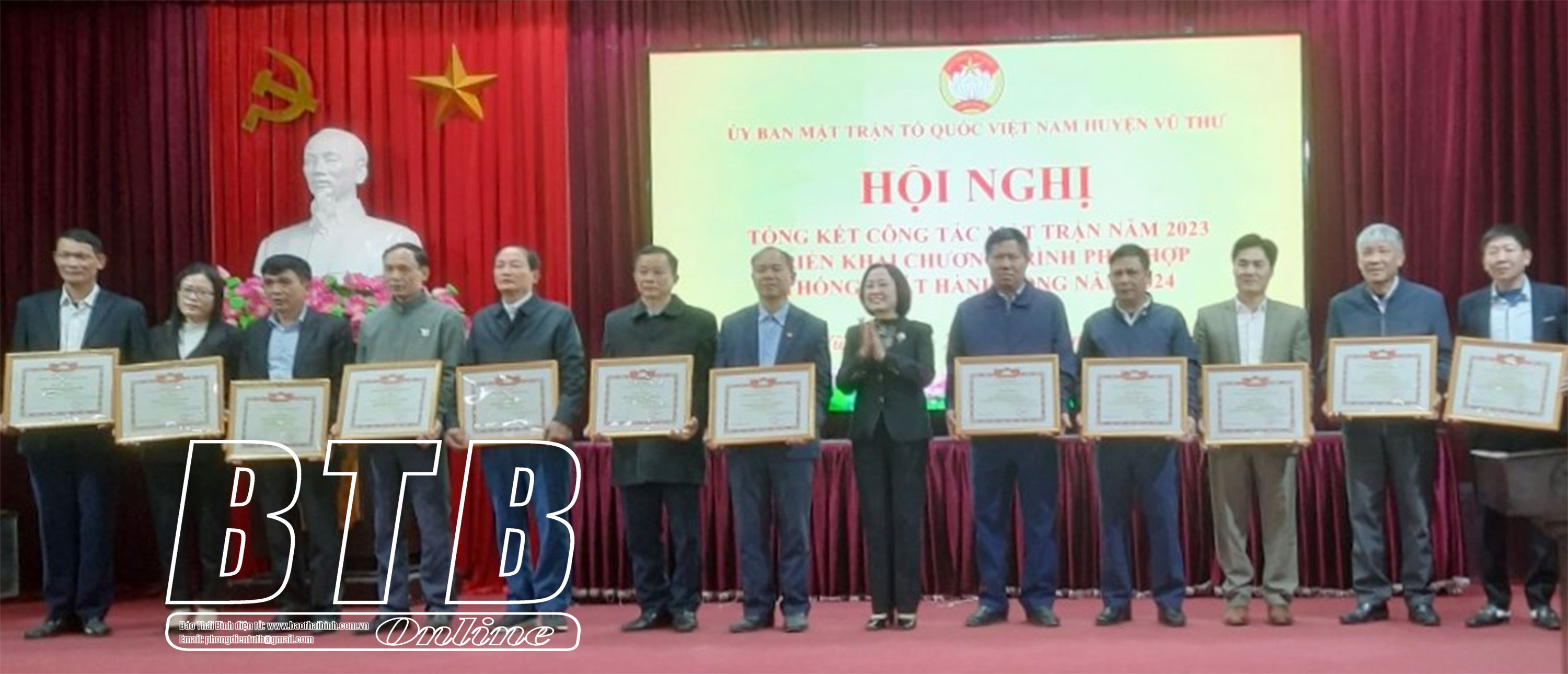 Tại hội nghị, có 9 tập thể, 8 cá nhân có thành tích xuất sắc trong công tác mặt trận năm 2023 của huyện Vũ Thư được biểu dương, khen thưởng.