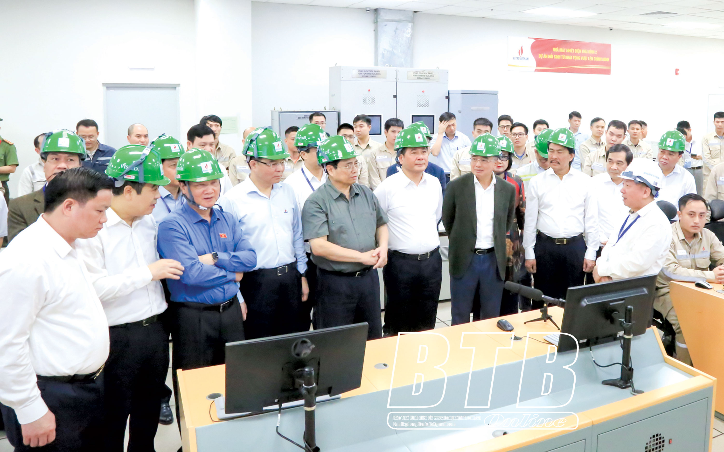 Thủ tướng Chính phủ Phạm Minh Chính cùng các đồng chí lãnh đạo thăm Trung tâm điều khiển tự động Nhà máy nhiệt điện Thái Bình 2, ngày 27/4/2023.