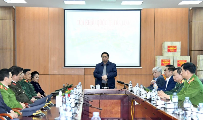 Thủ tướng Phạm Minh Chính thăm, động viên các lực lượng chức năng đang làm nhiệm vụ tại Cửa khẩu quốc tế Trà Lĩnh.