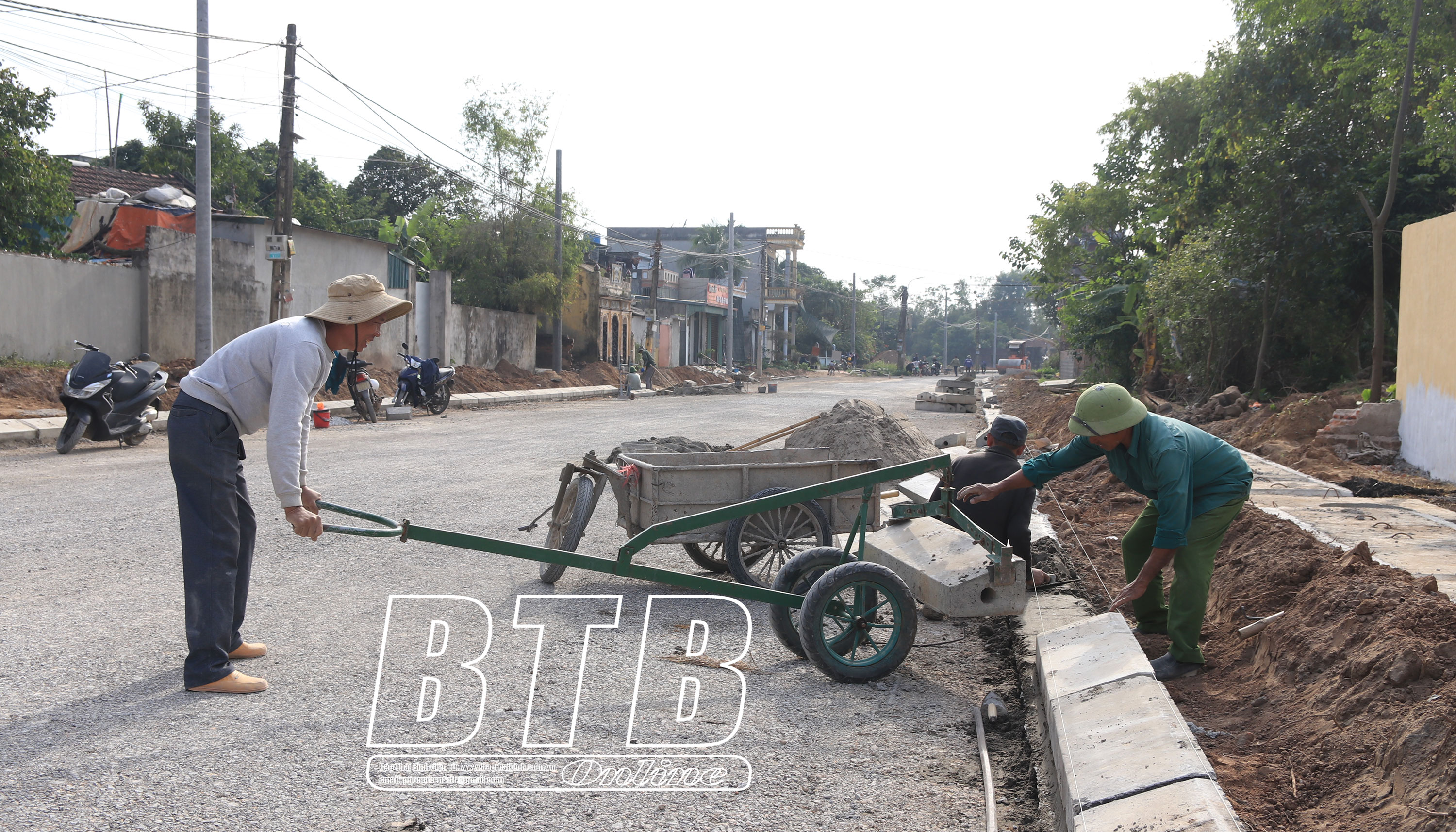 Thi công hạng mục bó vỉa vỉa hè tuyến đường đến trung tâm xã Vũ Đông, đoạn từ đường Trần Lãm qua thôn Tam Lạc, xã Vũ Lạc đến xã Vũ Đông.